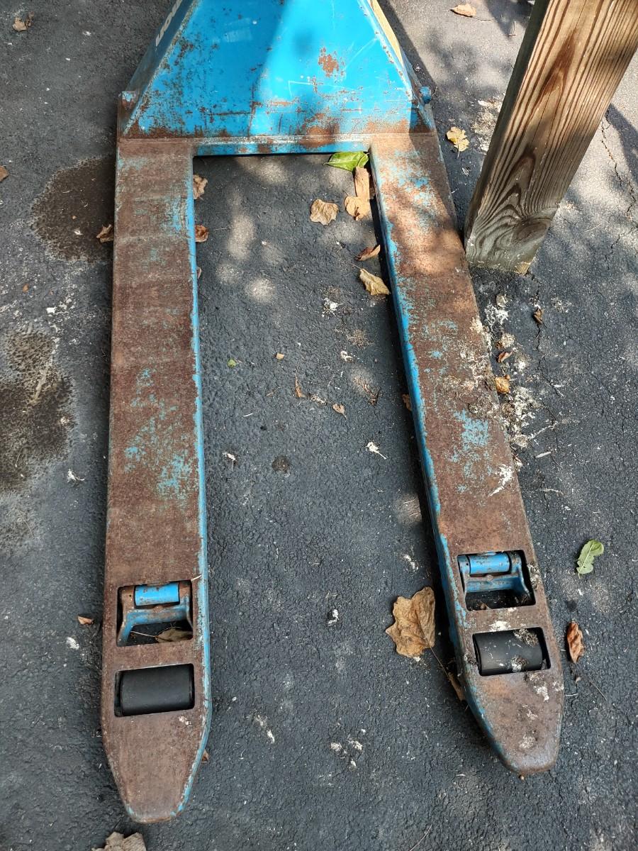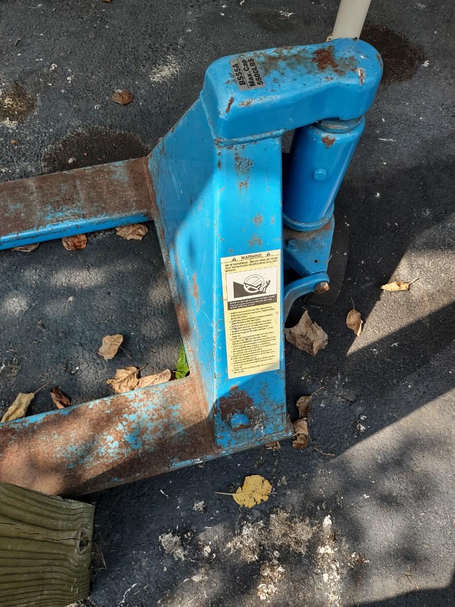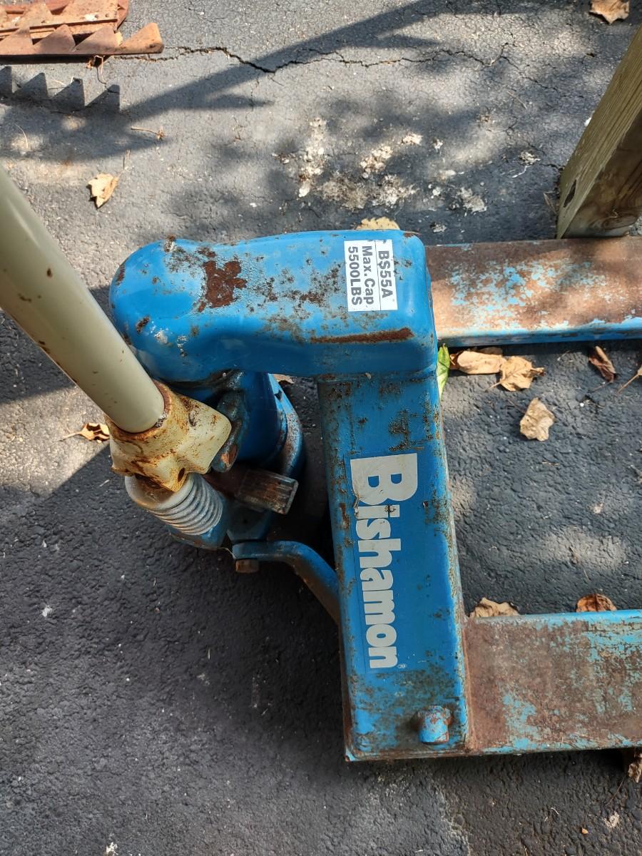 Bishamon Hydraulic Pallet Jack 5500Lbs Max Cap. Does Have Rust Spots. Please see all pictures as they are the best representation of the items. The pictures show condition, measurements if taken, and what is included in the lot. Due to the large amount that we photograph and the time frame, we are not always able to take measurements. All items unless noted, are pre-owned and have been used. If you purchased furniture, you must bring help. We do not allow one person to carry large furniture out on their own. Bring help, tools and a truck for the safety of our clients homes, and your personal safety. Company policy. Thank you.