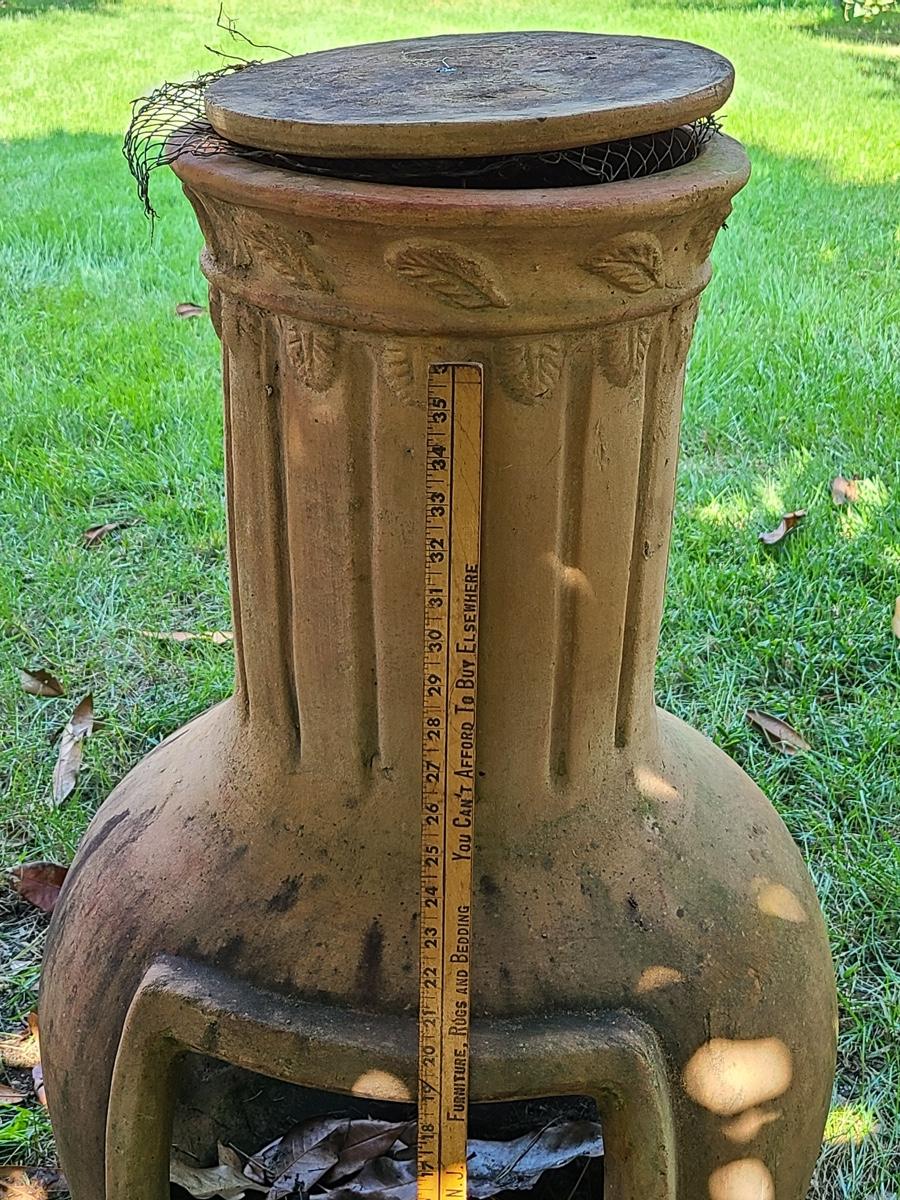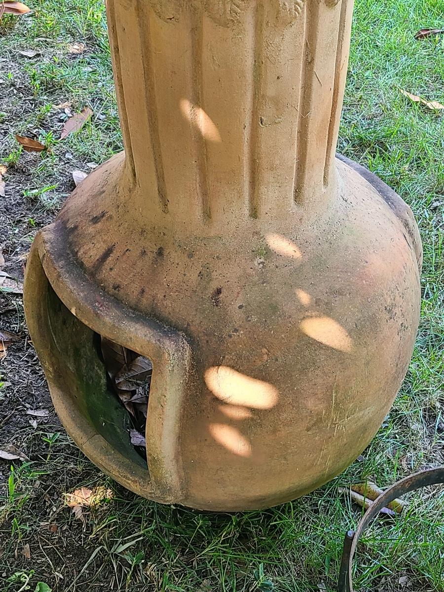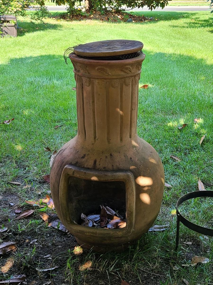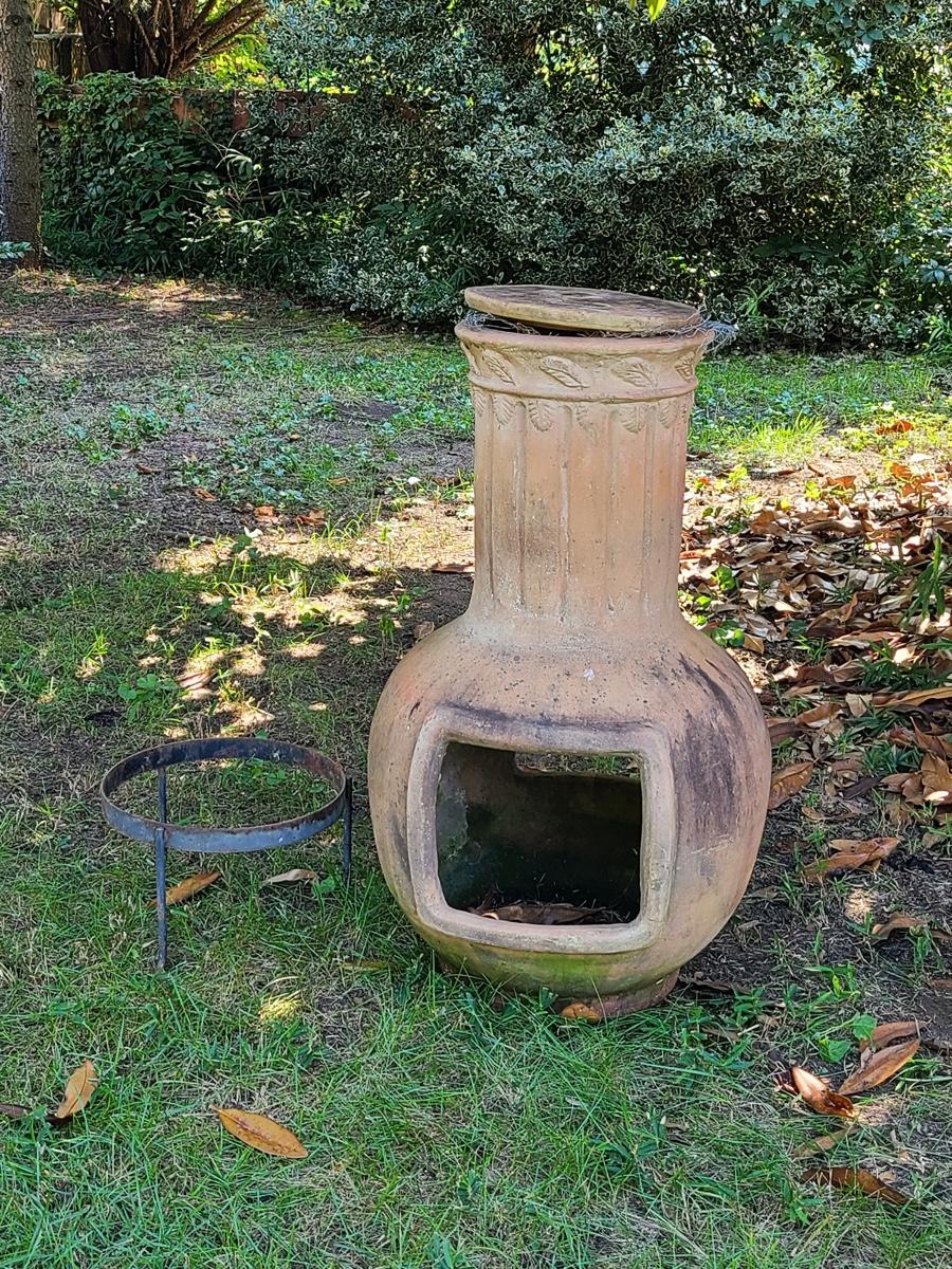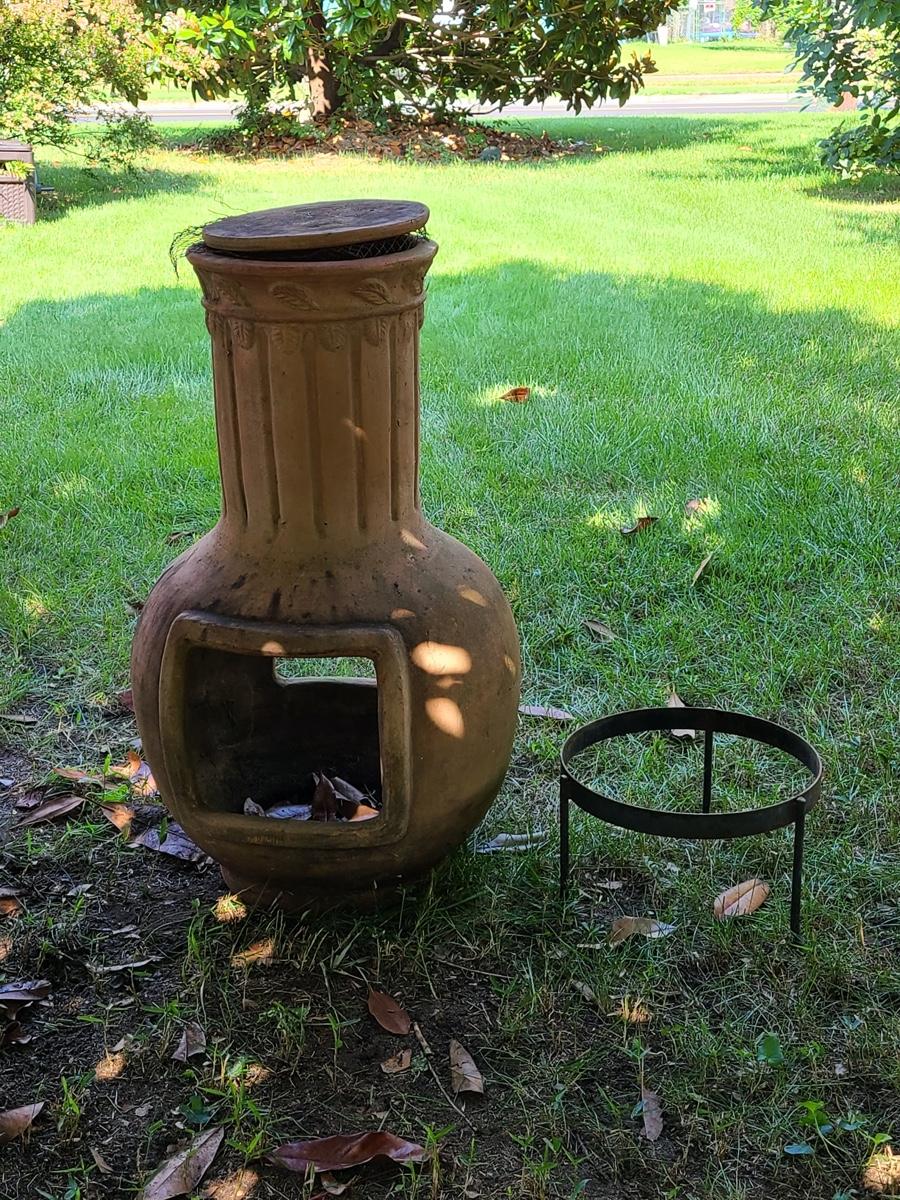 Working Chiminea with Stand. As-seen in pictures. Please see all pictures as they are the best representation of the items. The pictures show condition, measurements if taken, and what is included in the lot. Due to the large amount that we photograph and the time frame, we are not always able to take measurements. All items unless noted, are pre-owned and have been used. If you purchased furniture, you must bring help. We do not allow one person to carry large furniture out on their own. Bring help, tools and a truck for the safety of our client’s homes, and your personal safety. Company policy. Thank you.