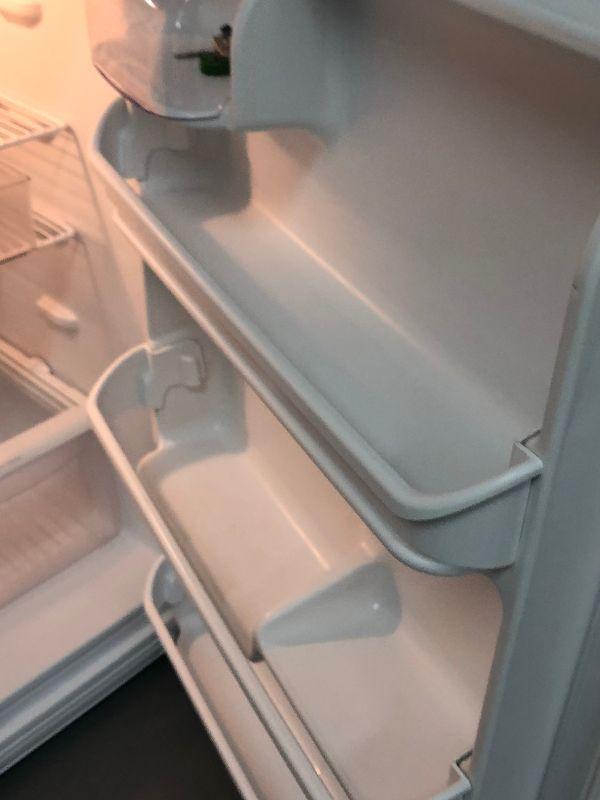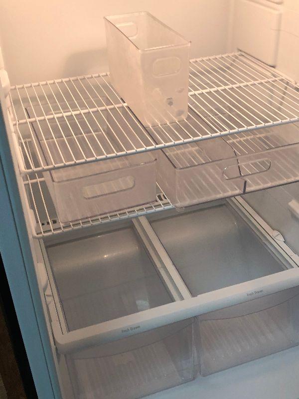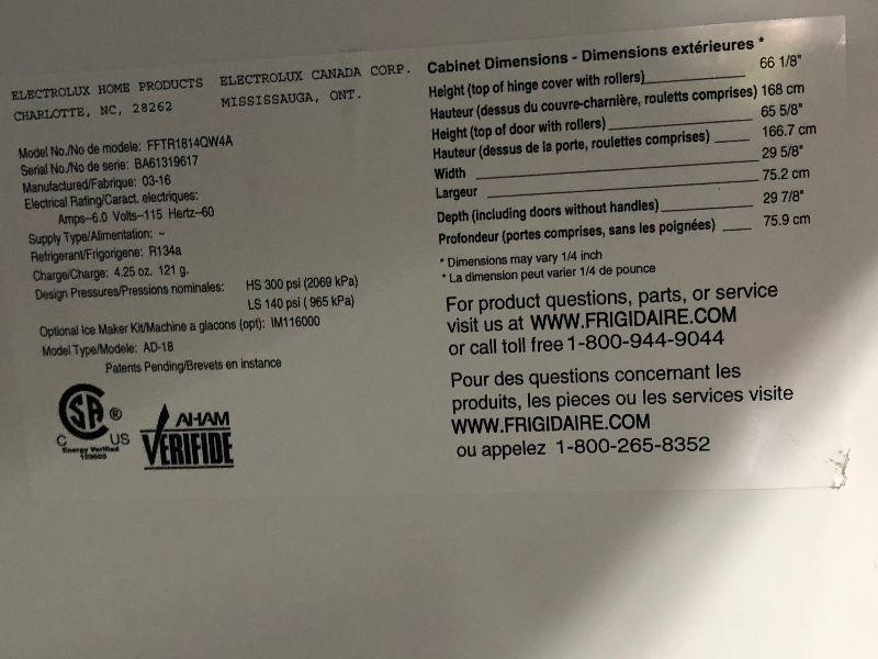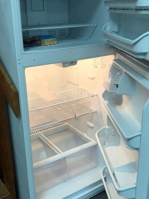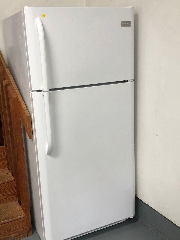 A Fridgidaire refrigerator with top freezer. Bring help to move.