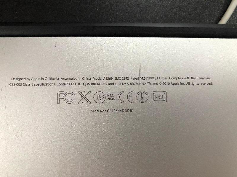Apple laptop, A1369. Powers on.