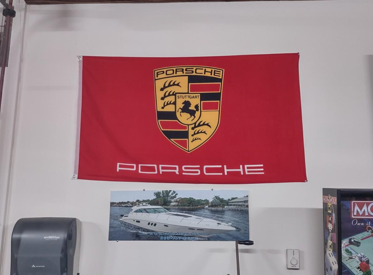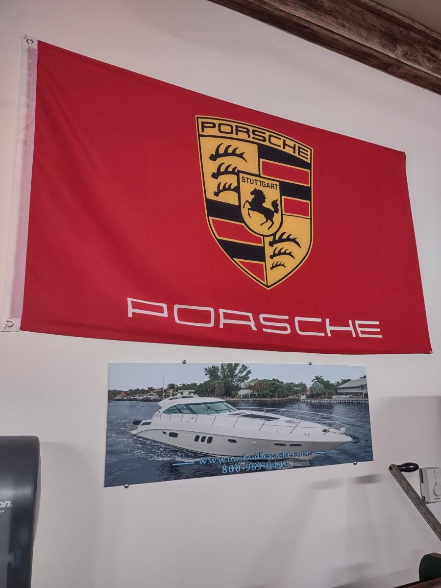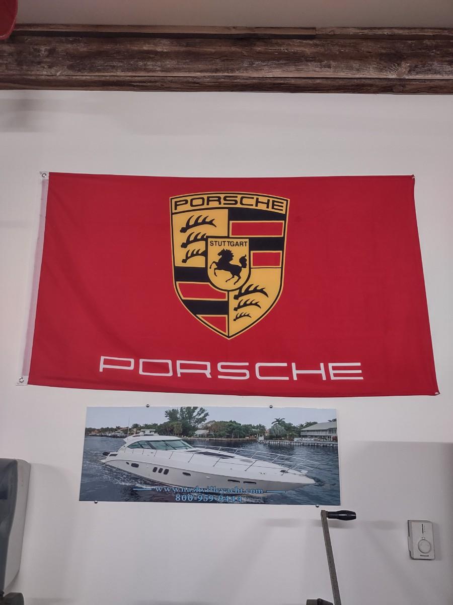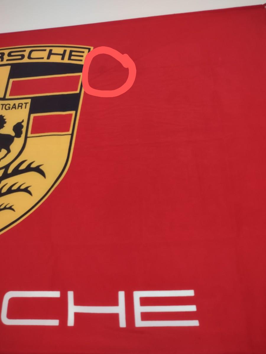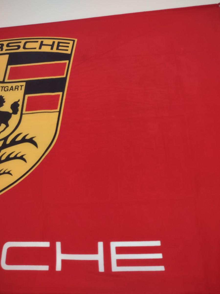 Porsche Flag Measures approximately 36×62. Has A Very Small Mark On The Right Side Of The Logo.. Please See Pic