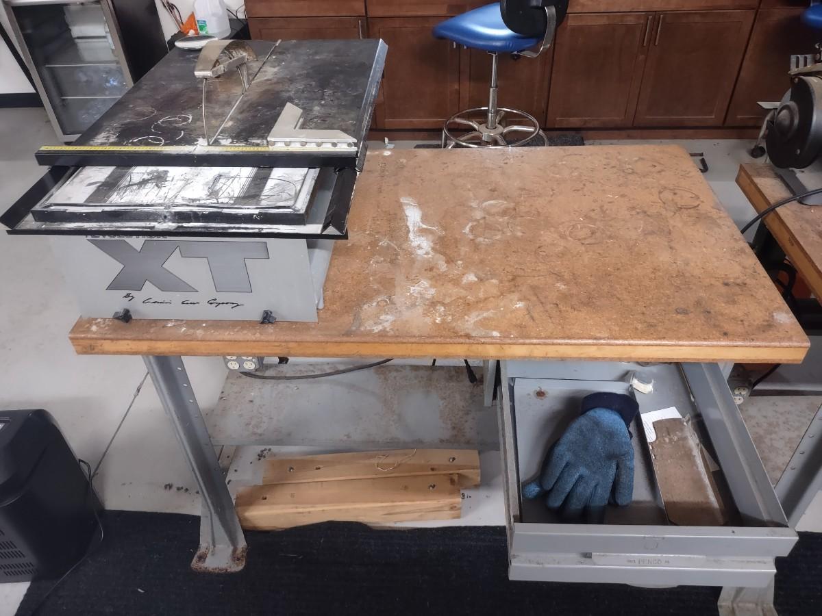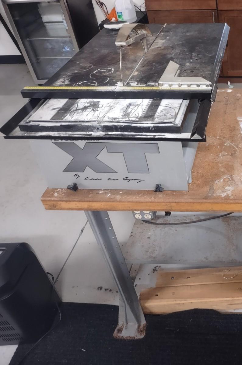 Gemini Revolution XT Ring Tile Saw.. Work Table Is Included. Please see all pictures as they are the best representation of the items. The pictures show condition, measurements if taken, and what is included in the lot. Due to the large amount that we photograph and the time frame, we are not always able to take measurements. All items unless noted, are pre-owned and have been used. If you purchased furniture, you must bring help. We do not allow one person to carry large furniture out on their own. Bring help, tools and a truck for the safety of our clients homes, and your personal safety. Company policy. Thank you.