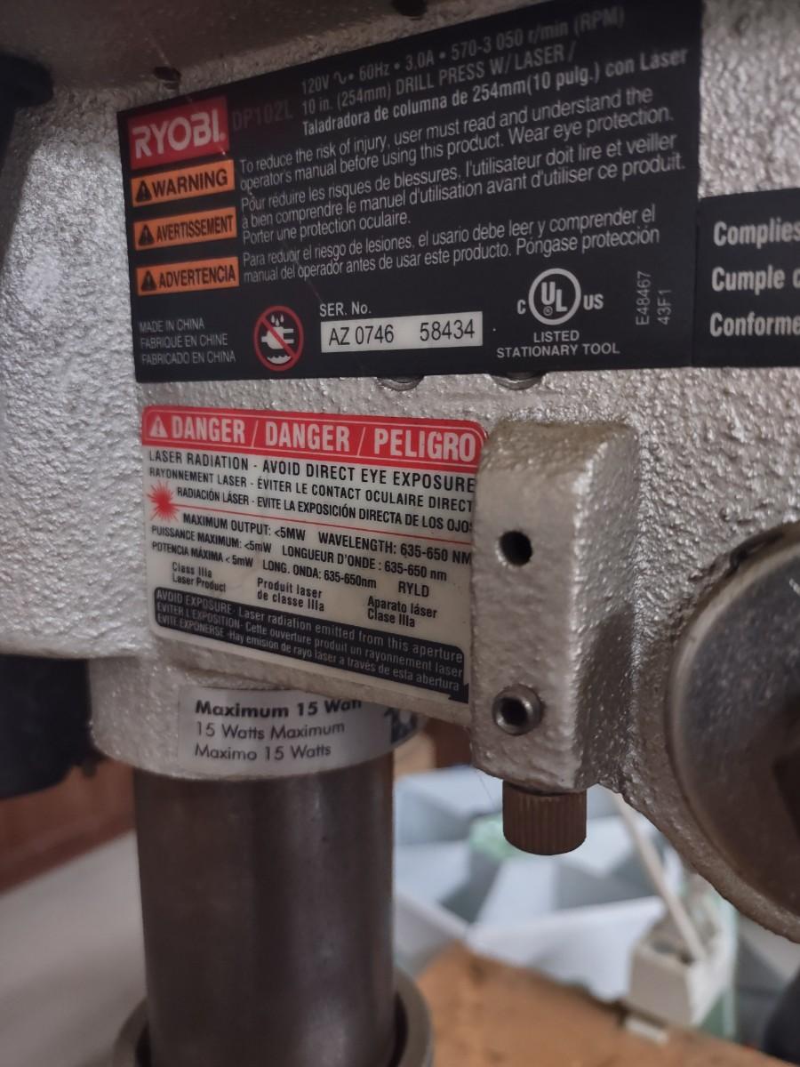 10" Drill Press With Laser. Comes With User Manual. Work Table Is NOT Included. Must Bring Tools To Remove From Table. Please see all pictures as they are the best representation of the items. The pictures show condition, measurements if taken, and what is included in the lot. Due to the large amount that we photograph and the time frame, we are not always able to take measurements. All items unless noted, are pre-owned and have been used. If you purchased furniture, you must bring help. We do not allow one person to carry large furniture out on their own. Bring help, tools and a truck for the safety of our clients homes, and your personal safety. Company policy. Thank you.