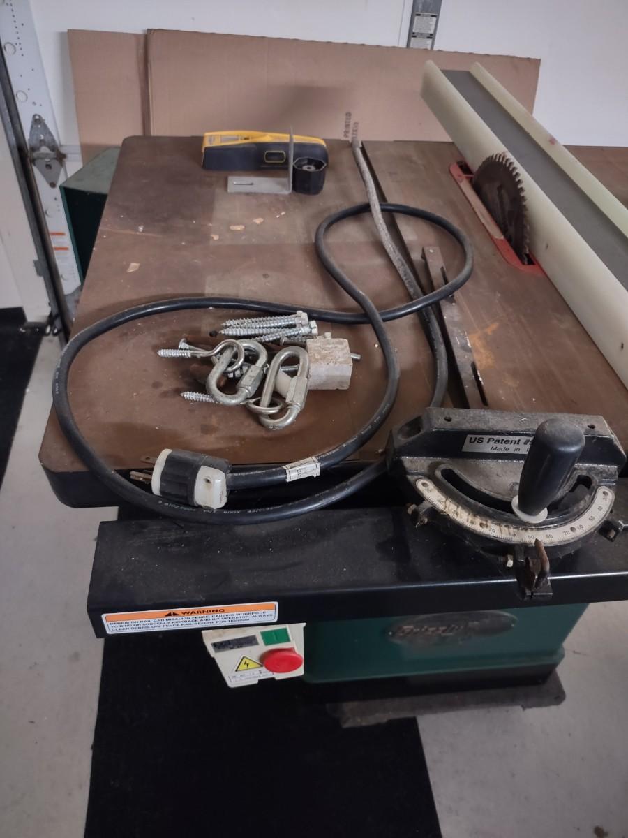Grizzley 10" Left-Tilting Table Saw. Please see all pictures as they are the best representation of the items. The pictures show condition, measurements if taken, and what is included in the lot. Due to the large amount that we photograph and the time frame, we are not always able to take measurements. All items unless noted, are pre-owned and have been used. If you purchased furniture, you must bring help. We do not allow one person to carry large furniture out on their own. Bring help, tools and a truck for the safety of our clients homes, and your personal safety. Company policy. Thank you.