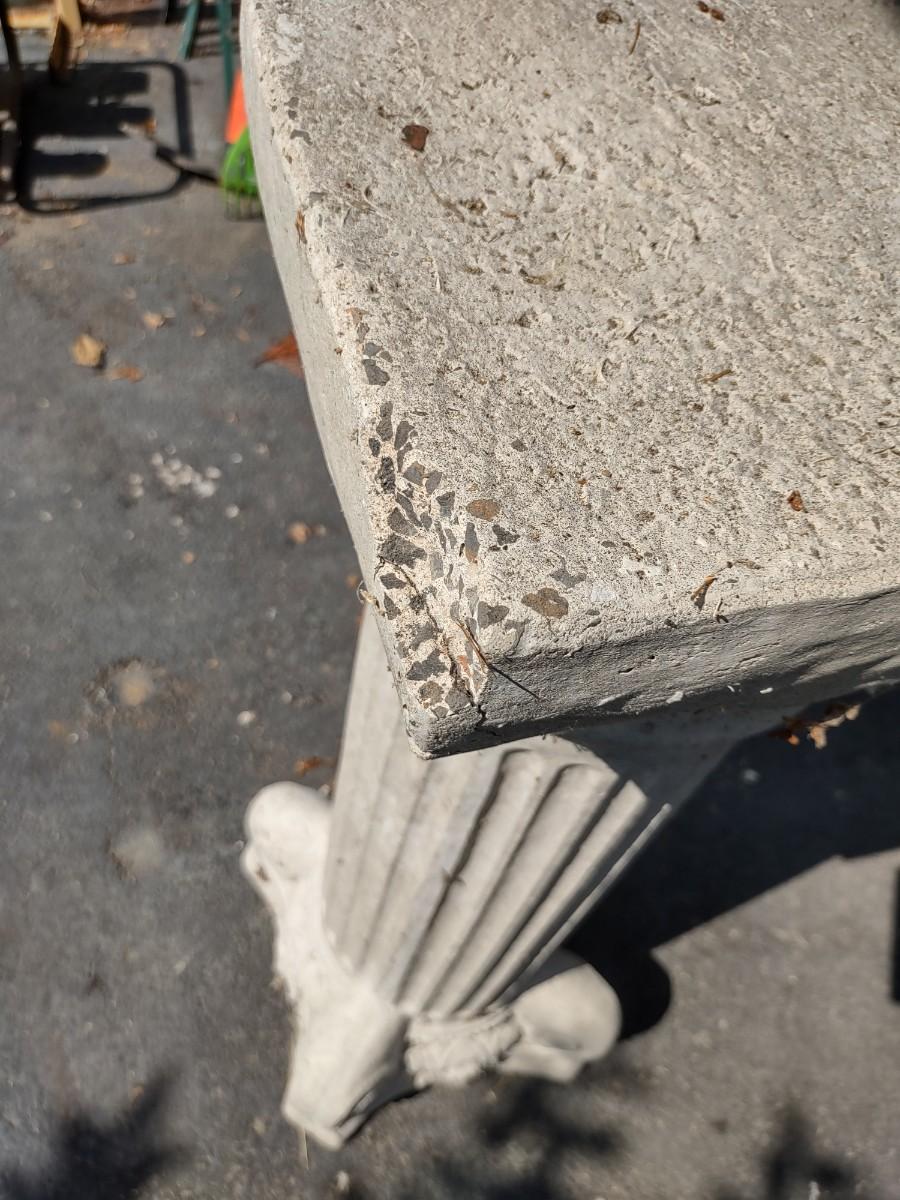 Concrete Pedestal.. Has Lots Of Cracks And Chips Please See Pictures. Please see all pictures as they are the best representation of the items. The pictures show condition, measurements if taken, and what is included in the lot. Due to the large amount that we photograph and the time frame, we are not always able to take measurements. All items unless noted, are pre-owned and have been used. If you purchased furniture, you must bring help. We do not allow one person to carry large furniture out on their own. Bring help, tools and a truck for the safety of our clients homes, and your personal safety. Company policy. Thank you.