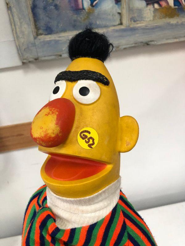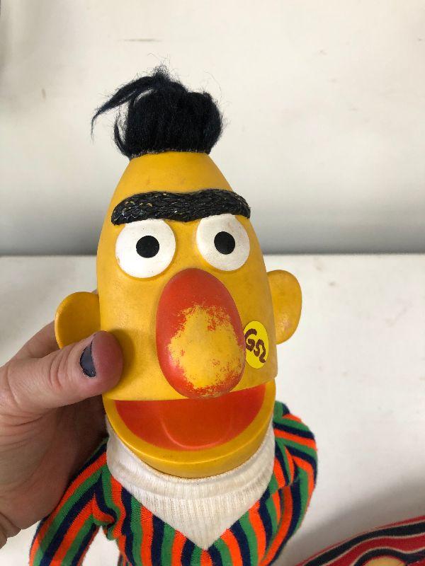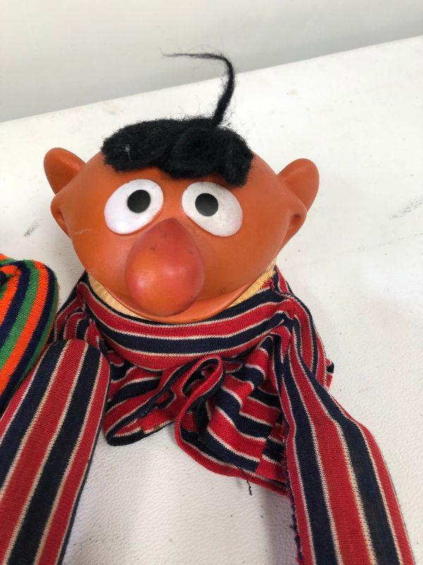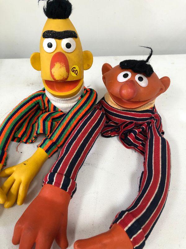 Original, vintage Bert and Ernie puppets. Some wear on nose and sleeve needs repair.