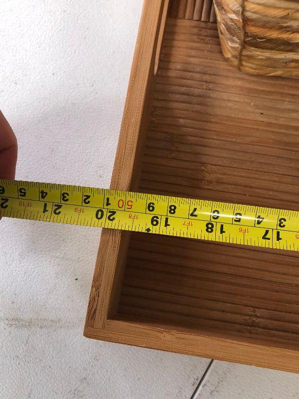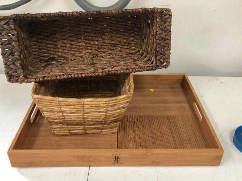 Please see pics for condition and sizing. Bamboo tray and basket lot