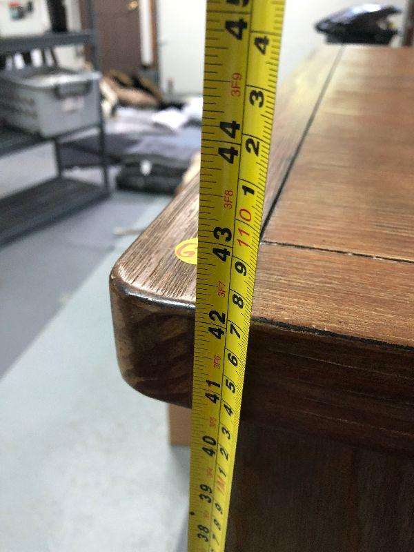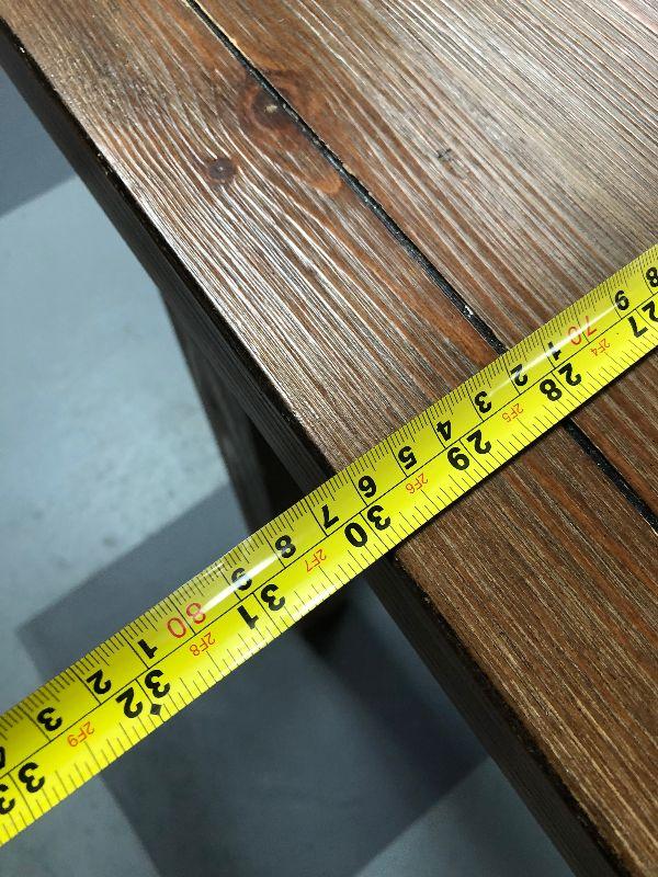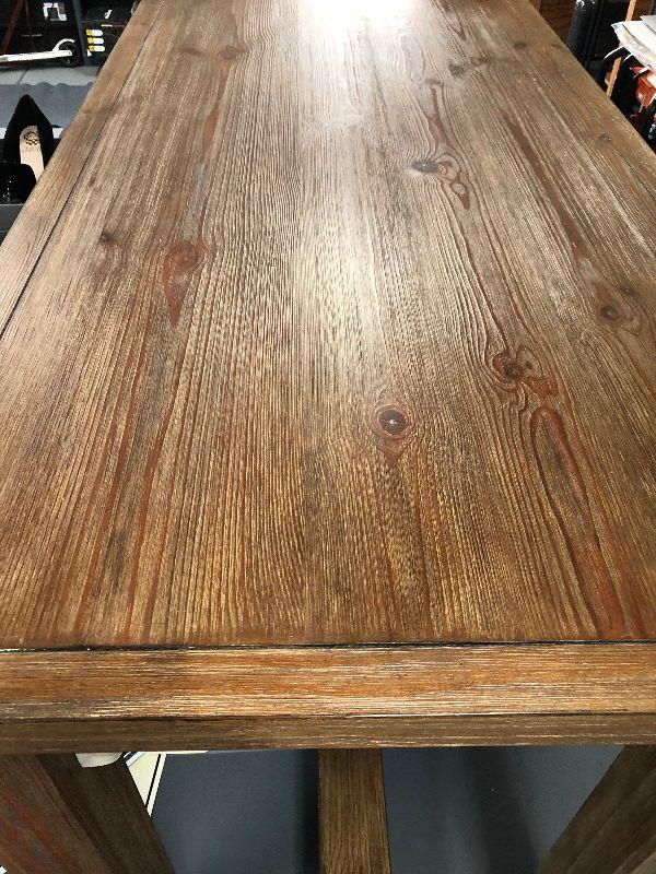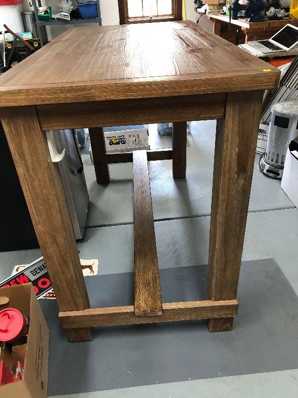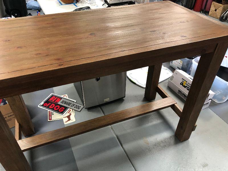 Wood bar height table. Would be perfect in a store also as a checkout!
