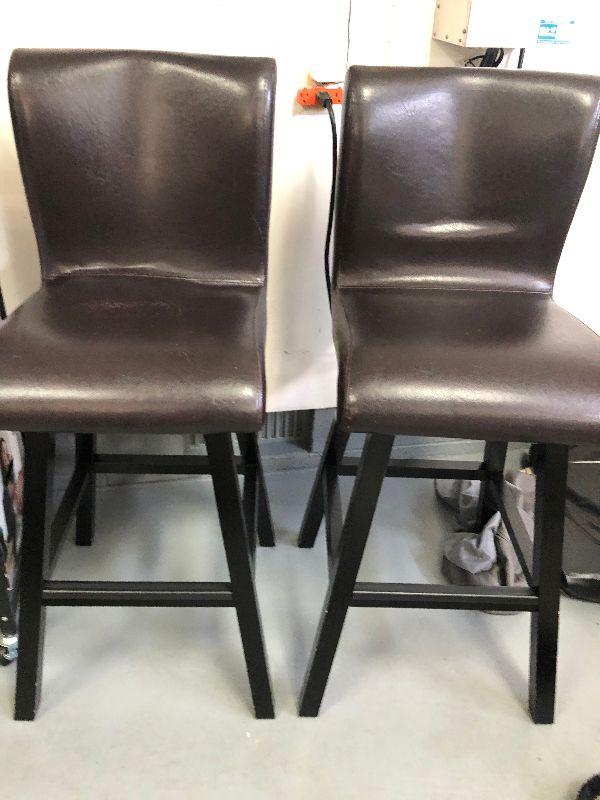 Two swivel stools. Seats show wear.