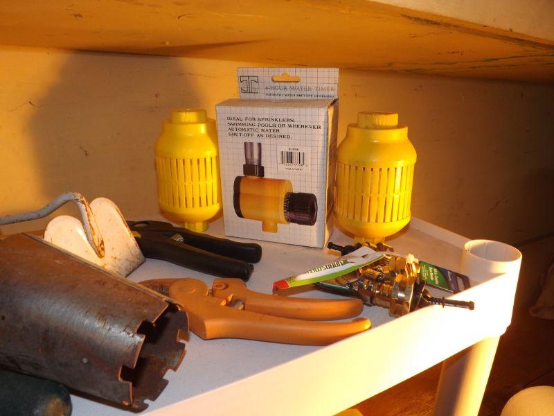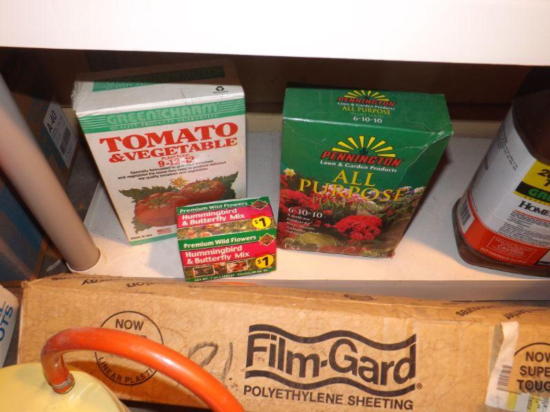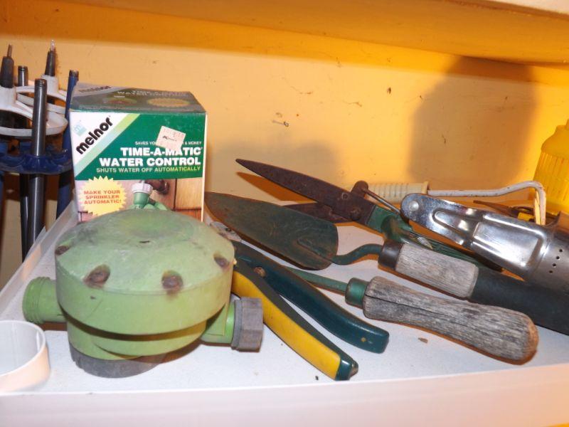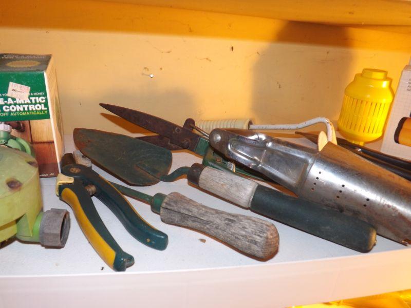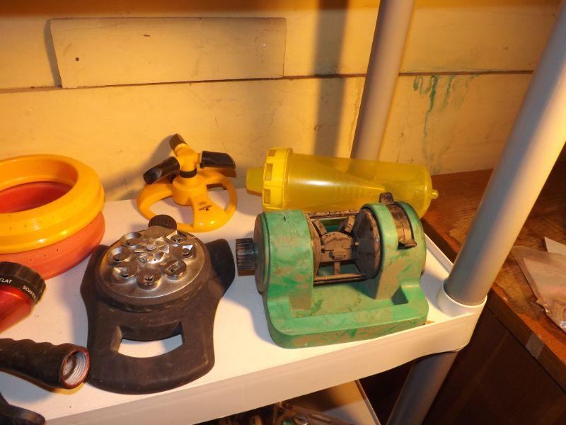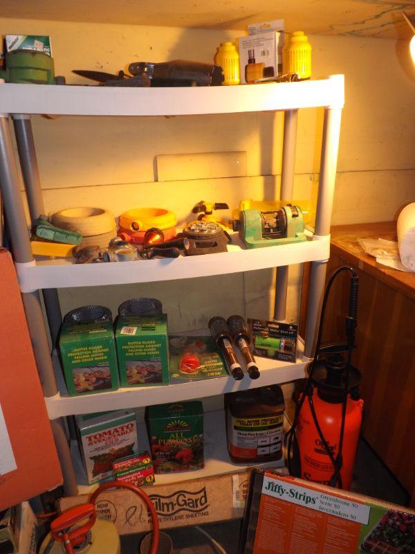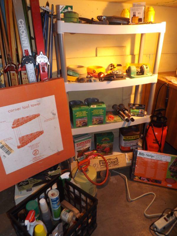 GARDEN % YARD ITEMS, CORNER ORGANIZER, GARDEN CHEMICALS, SPRINKLERS, GARDEN TOOLS, WEED SPRAYER BOTTLES, SOLAR LIGHTS, AND MORE