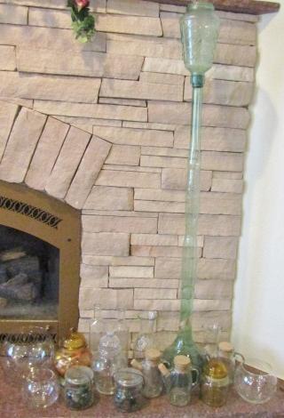 THE TALL GREEN GLASS CONTAINER WAS AT ONE TIME FILLED WITH WINE!