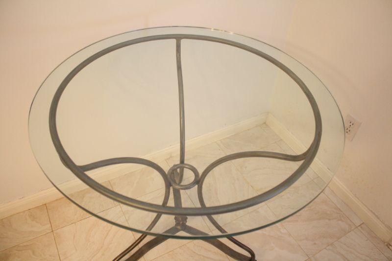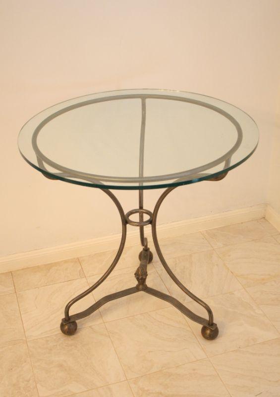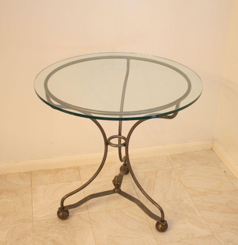 Vintage Metal Pedestal Glass Top Accent Table - A fine glass top table with beautifully designed metal base and ball feet. In very good condition. Diameter of glass top is 30" inches and the height of the table is 31" inches.