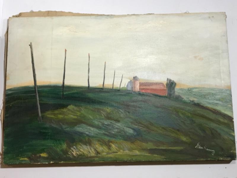 Glen Ranney signed original oil painting on canvas “Farmland Scenery”. Measures 30” long and 20” tall