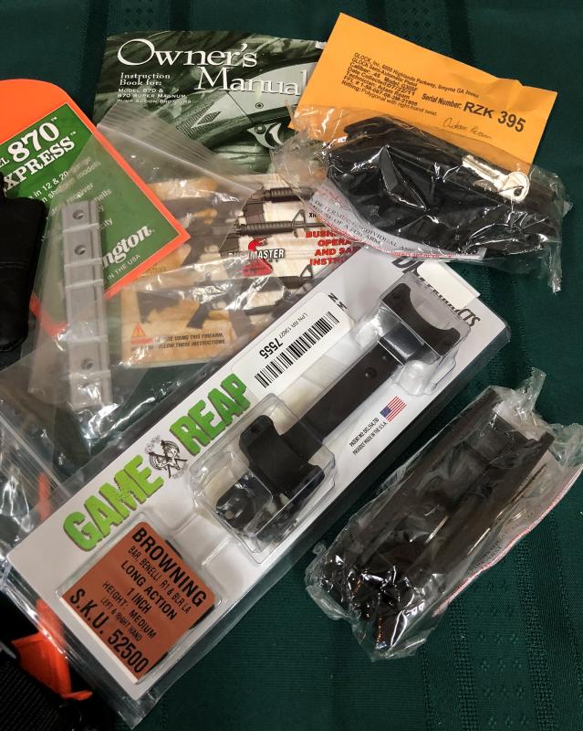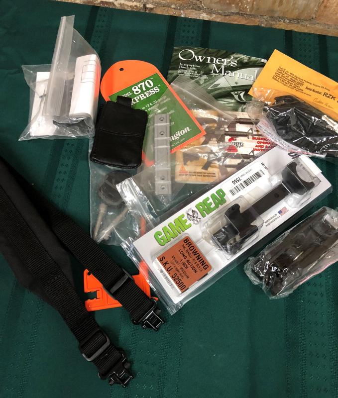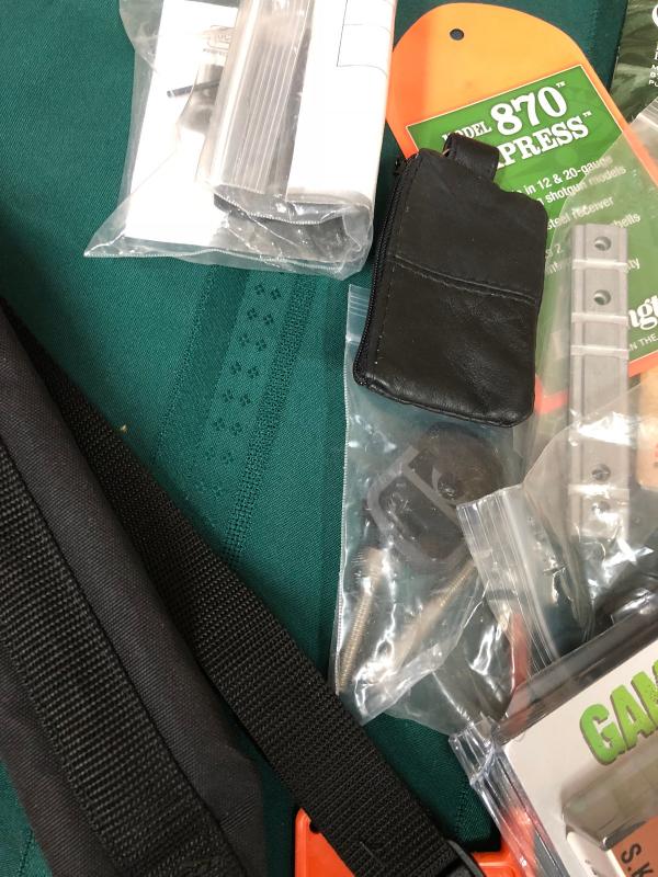 Large lot of new gun parts and accessories..Includes a strap..Scope mounts, trigger locks...as shown...
