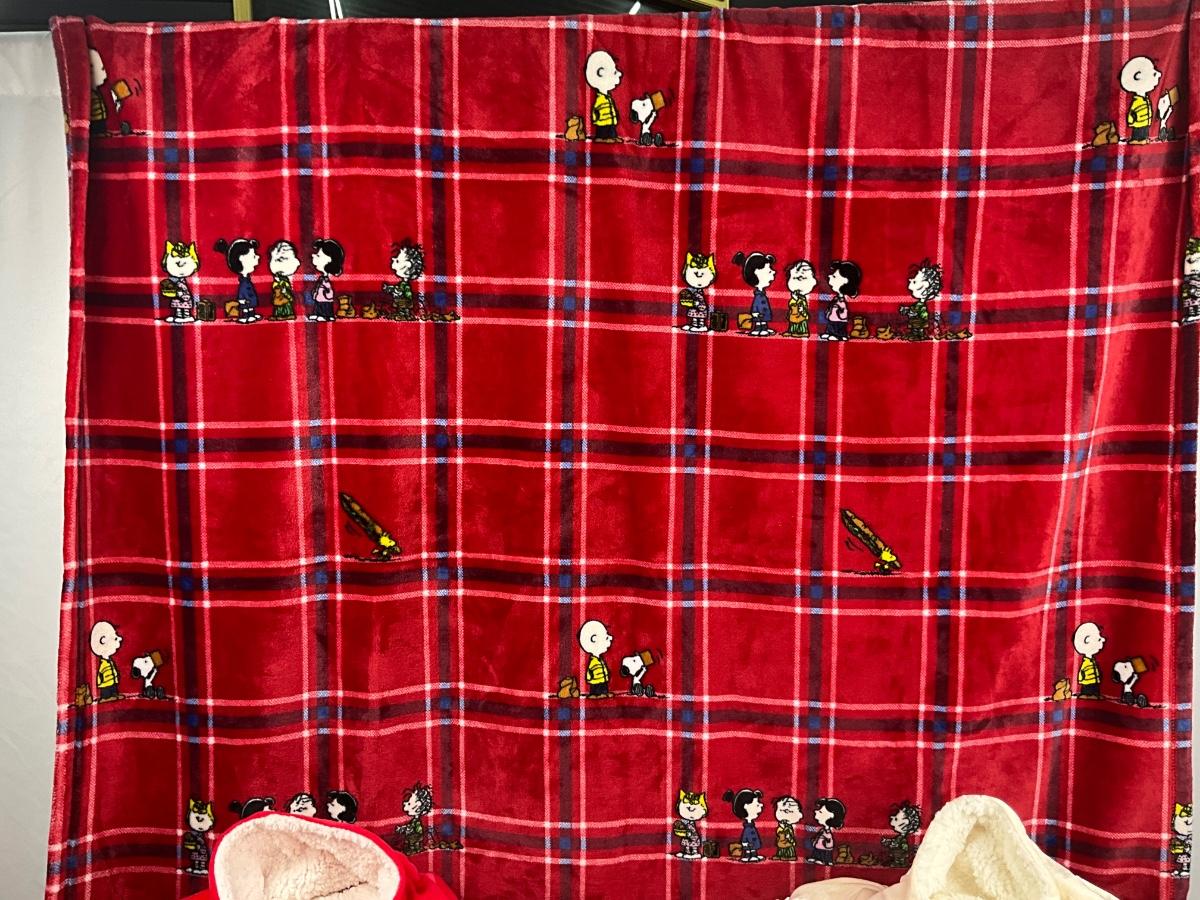 Lot H 302 Two The Comfy Original Blanket Sweatshirts Peanuts Throw Blanket The Comfy Slipper Socks Throw Blanket