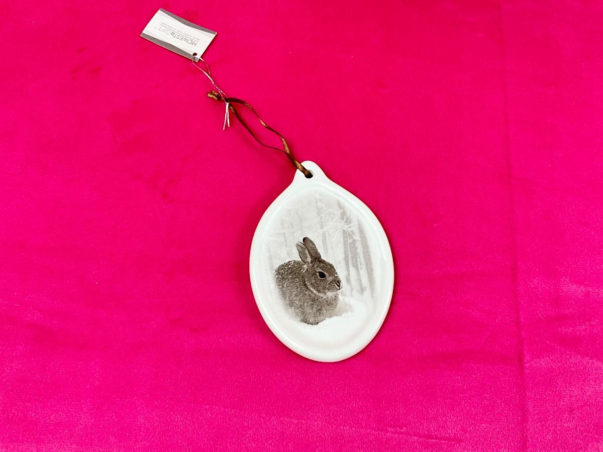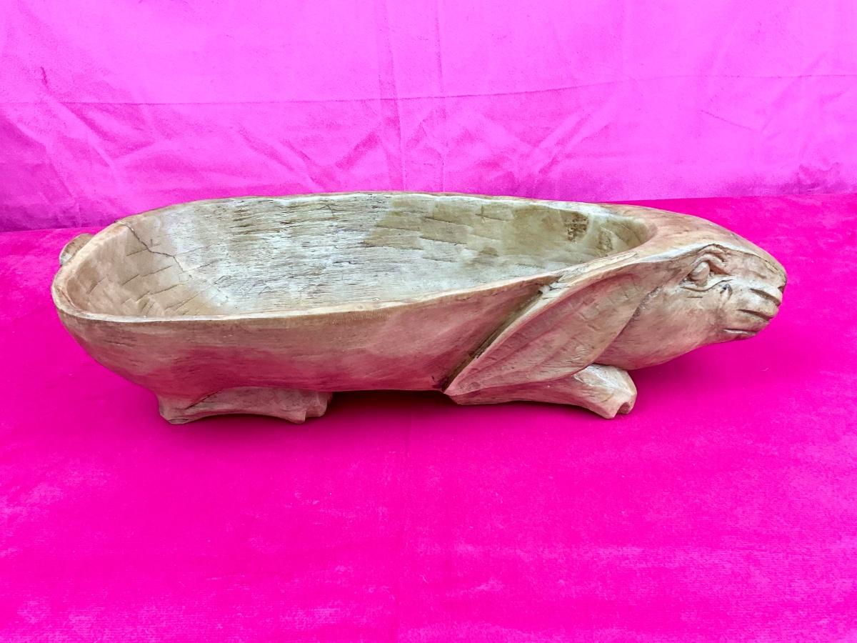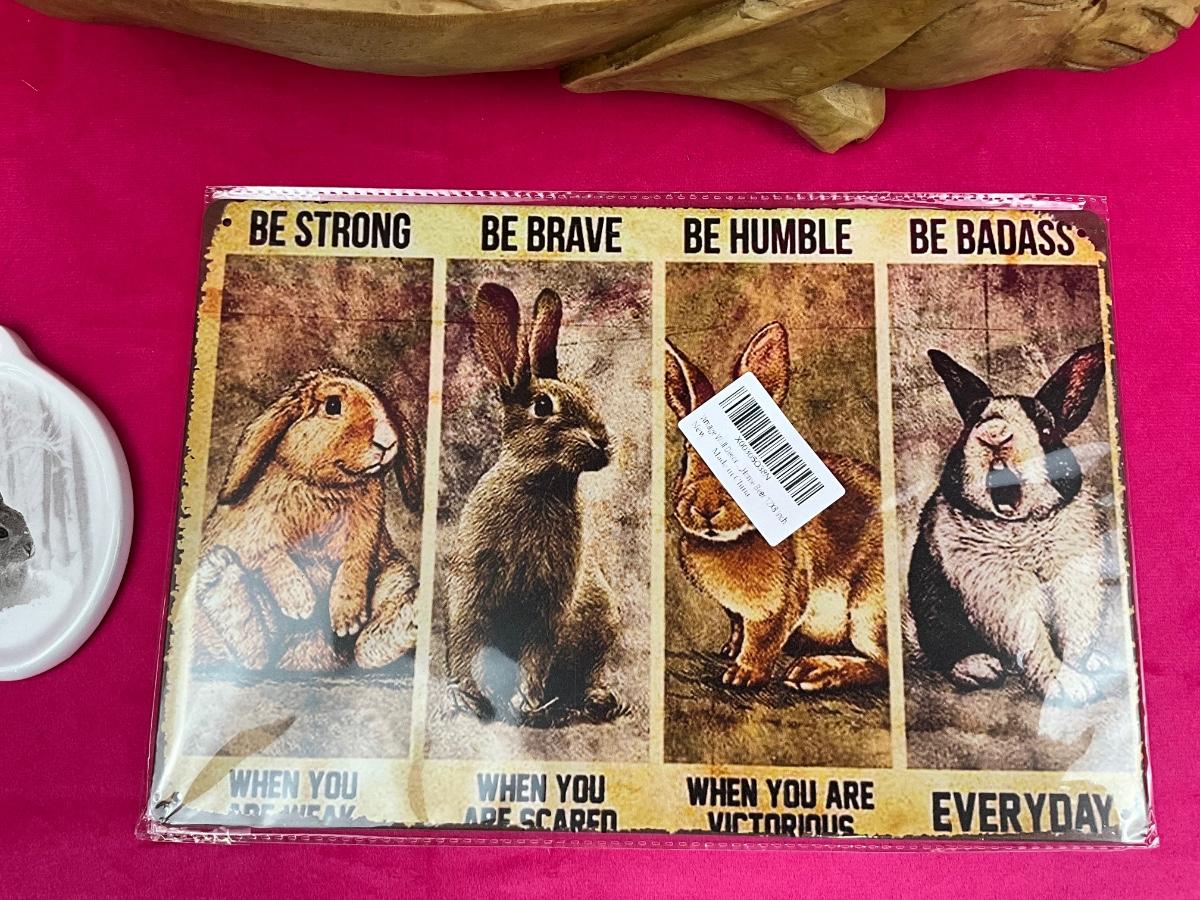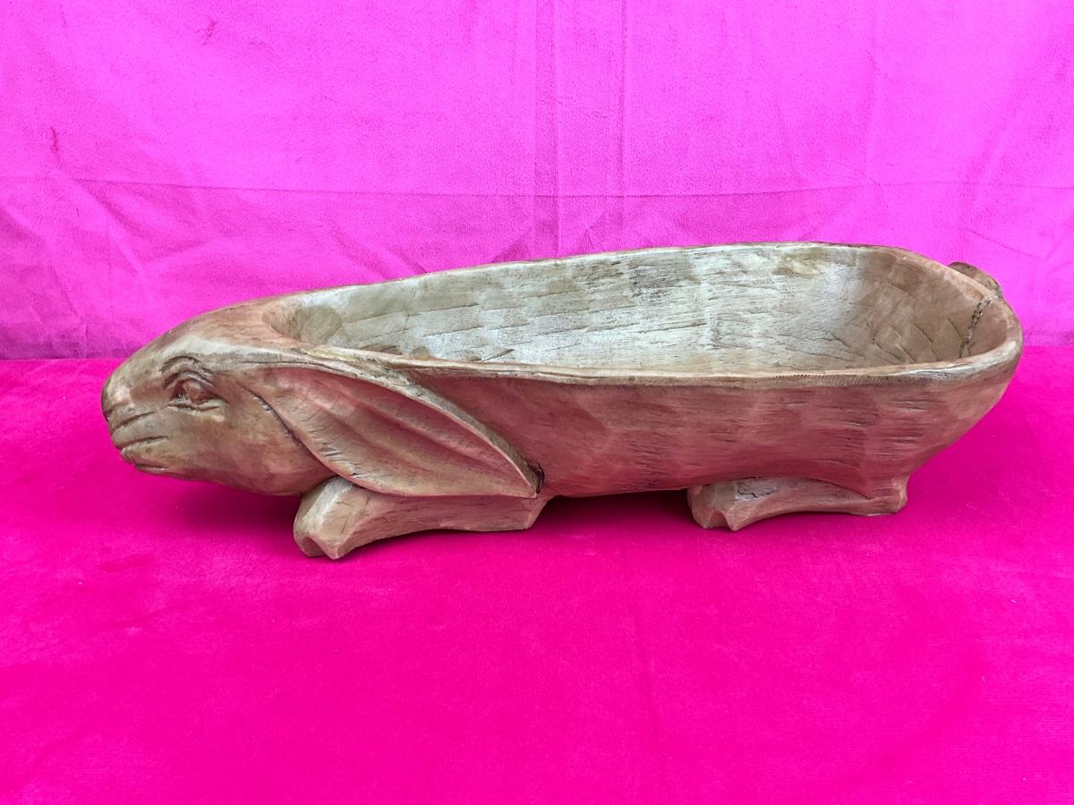 The lot contains Happy Easter hanging flag, bunny porcelain ornament, metal sign and wooden carved bunny bowl.