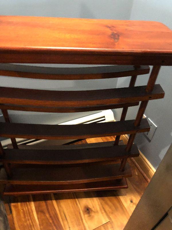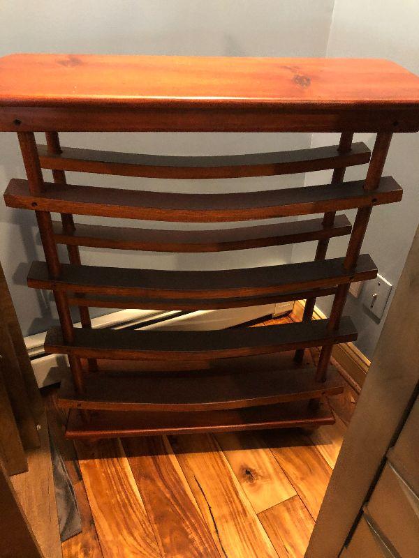 A nicely made, wooden rack for shoes or whatever you can use it for.