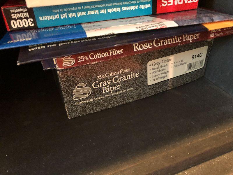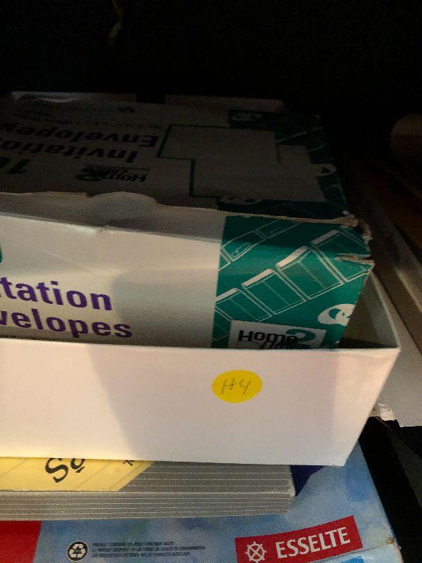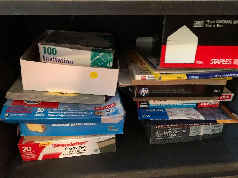 File folders, envelopes, copy paper and more. Bring box for moving.