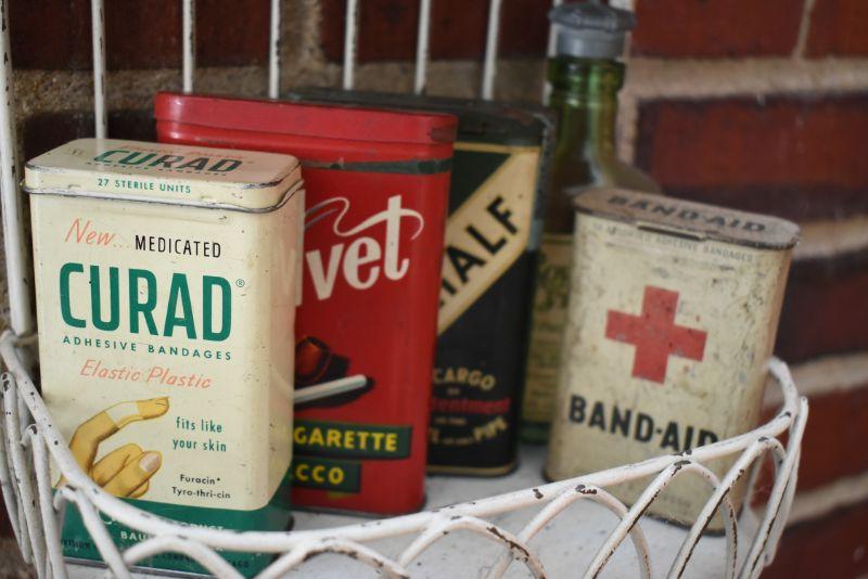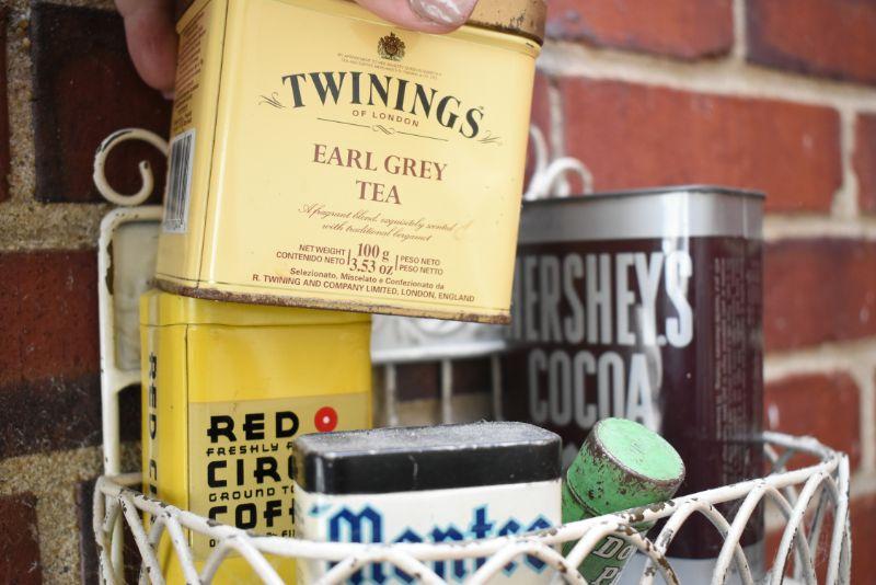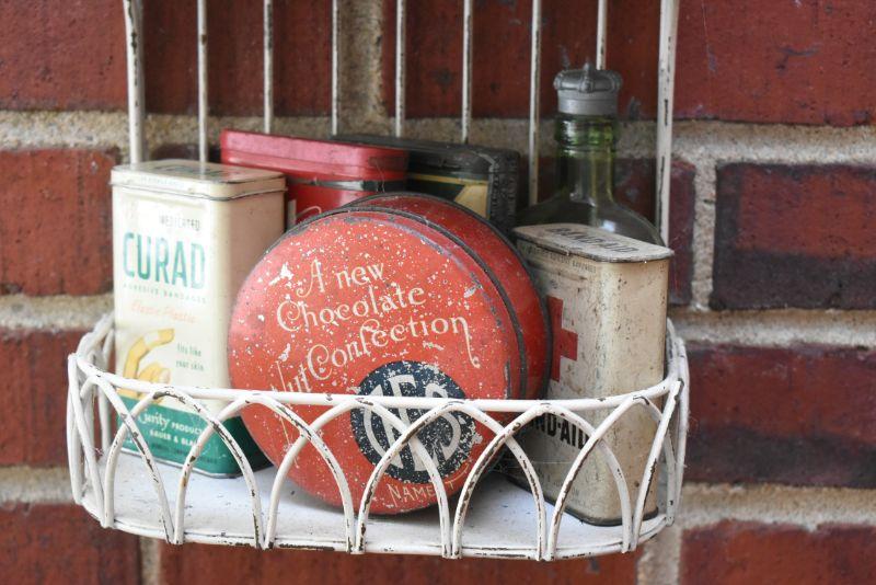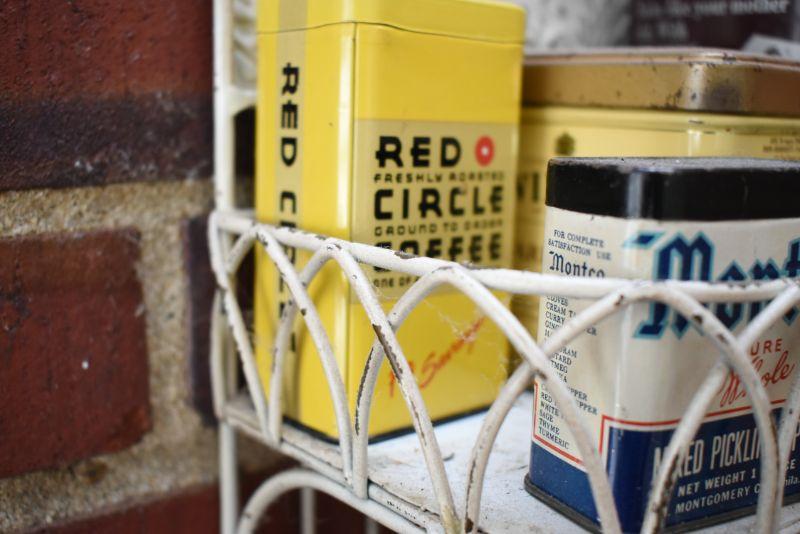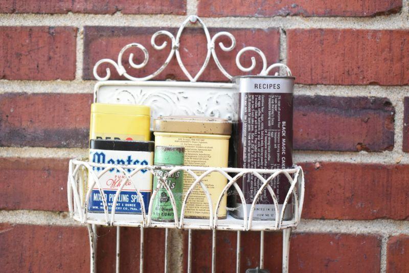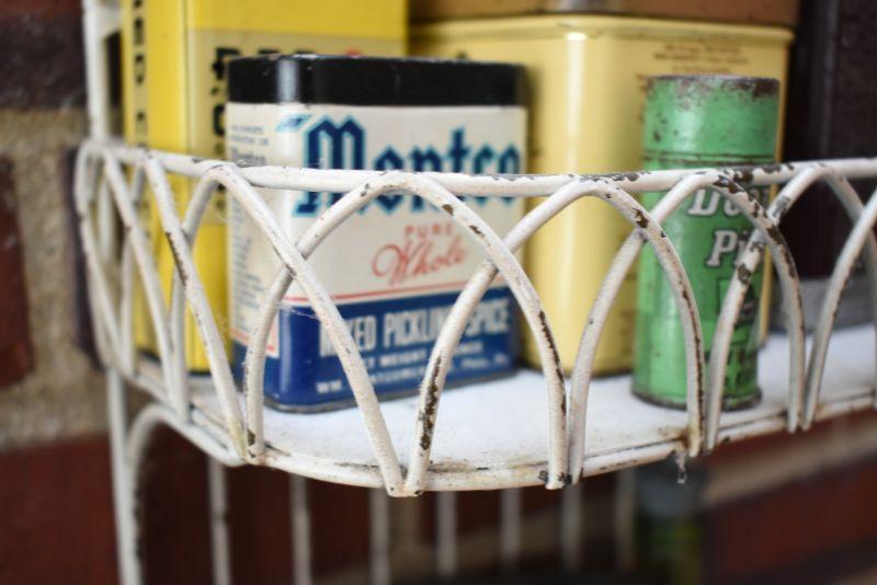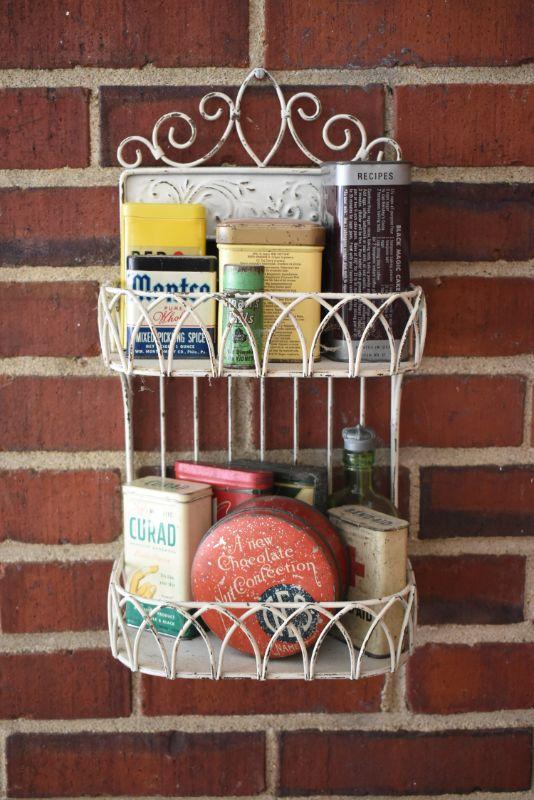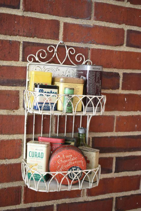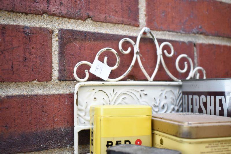 Lot H-4: Vintage Metal Shelves with Vintage Tins
