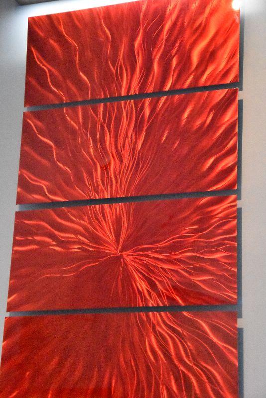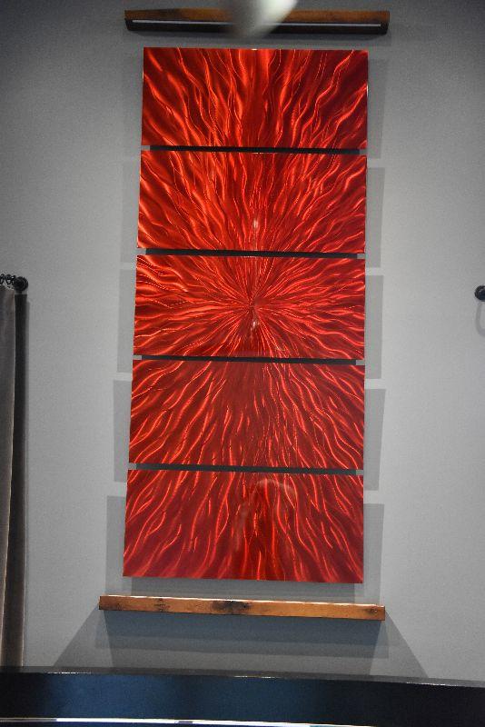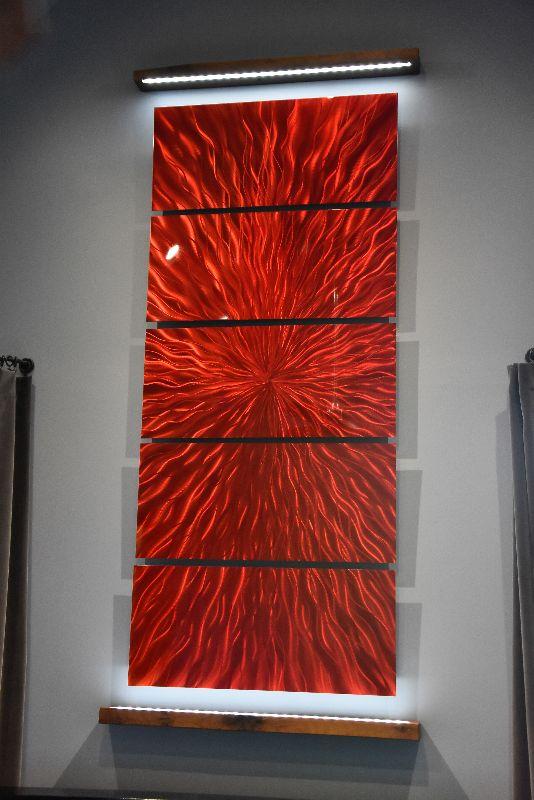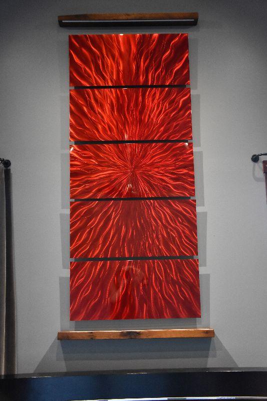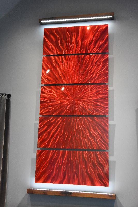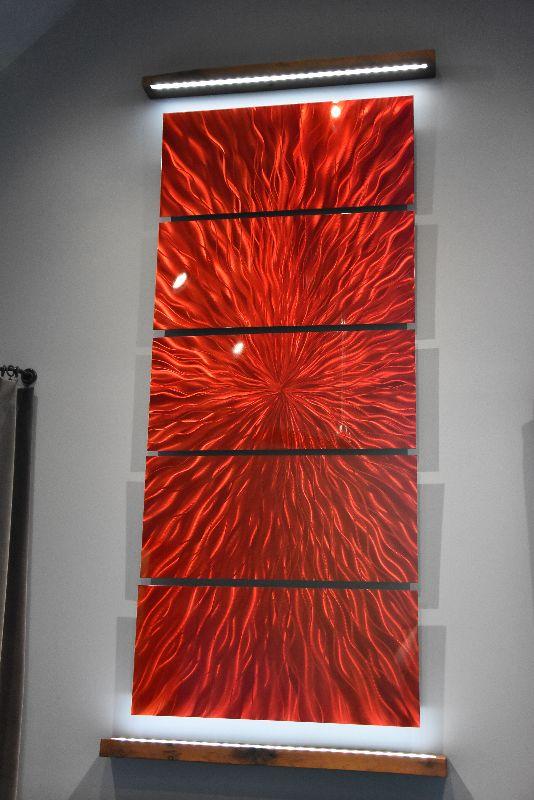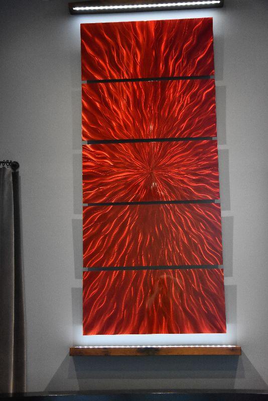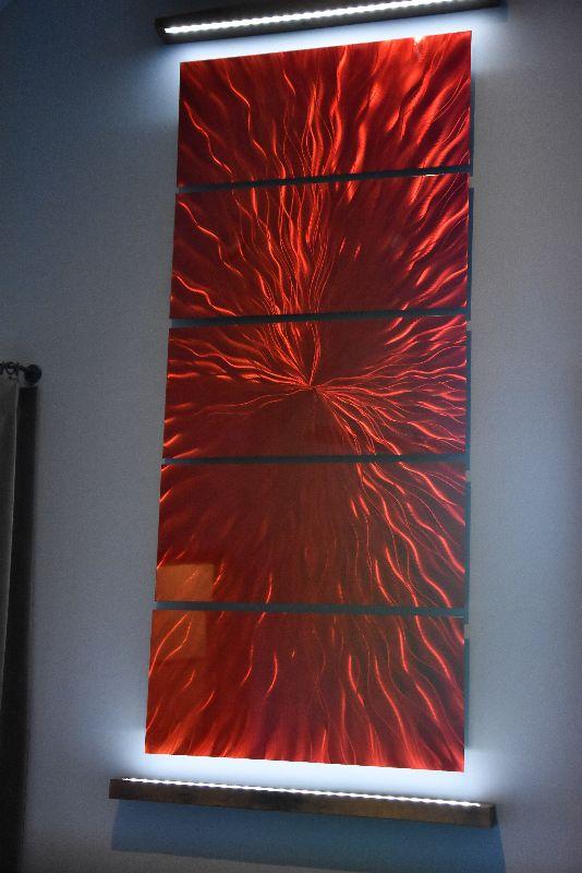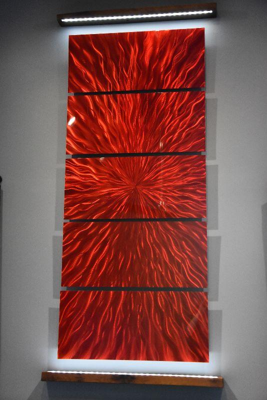 Lot H64: Custom Artist Red Metal 5 Panel Art/Sculpture with Lighting!