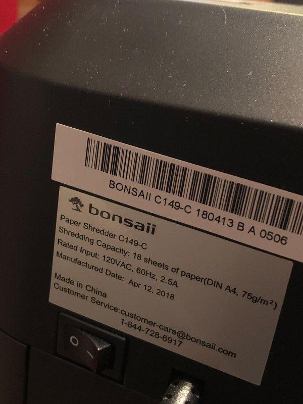 Lot H9: Bonsaii Paper Shredder! 18 sheets!