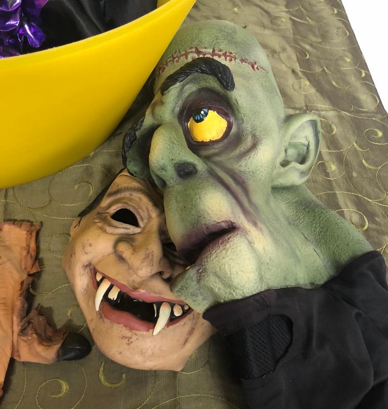 New or virtually new condition on this tub of various Halloween costumes and masks...as shown..