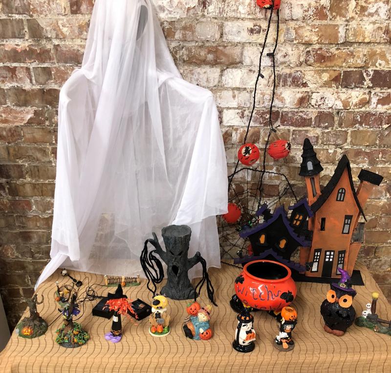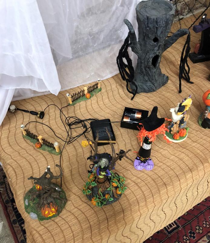 Here is another lot of new or virtually new Halloween decorations..animated...some electrified..Trees..Houses and Figurines...