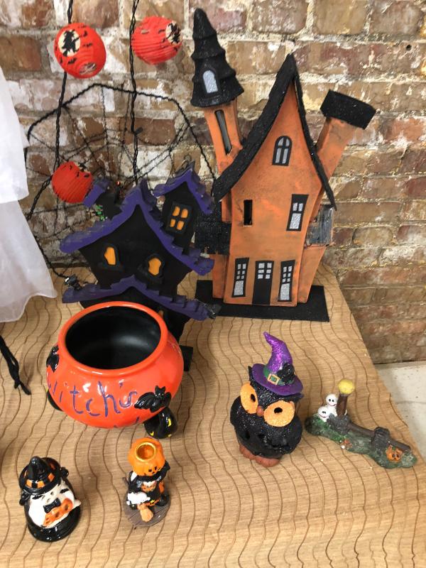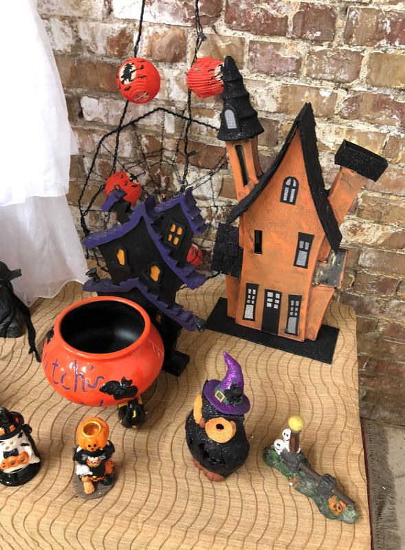 lot HALLOWEEN DECORATIONS trees houses figurines