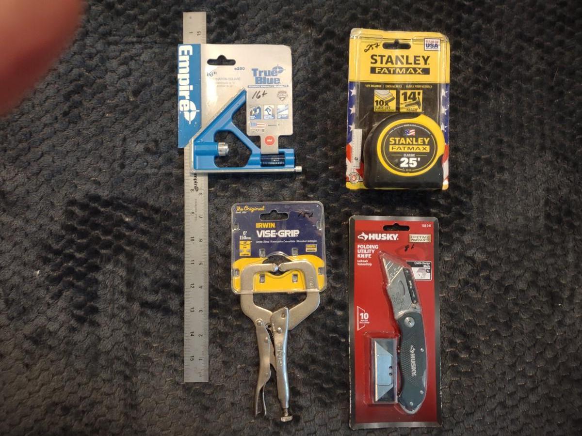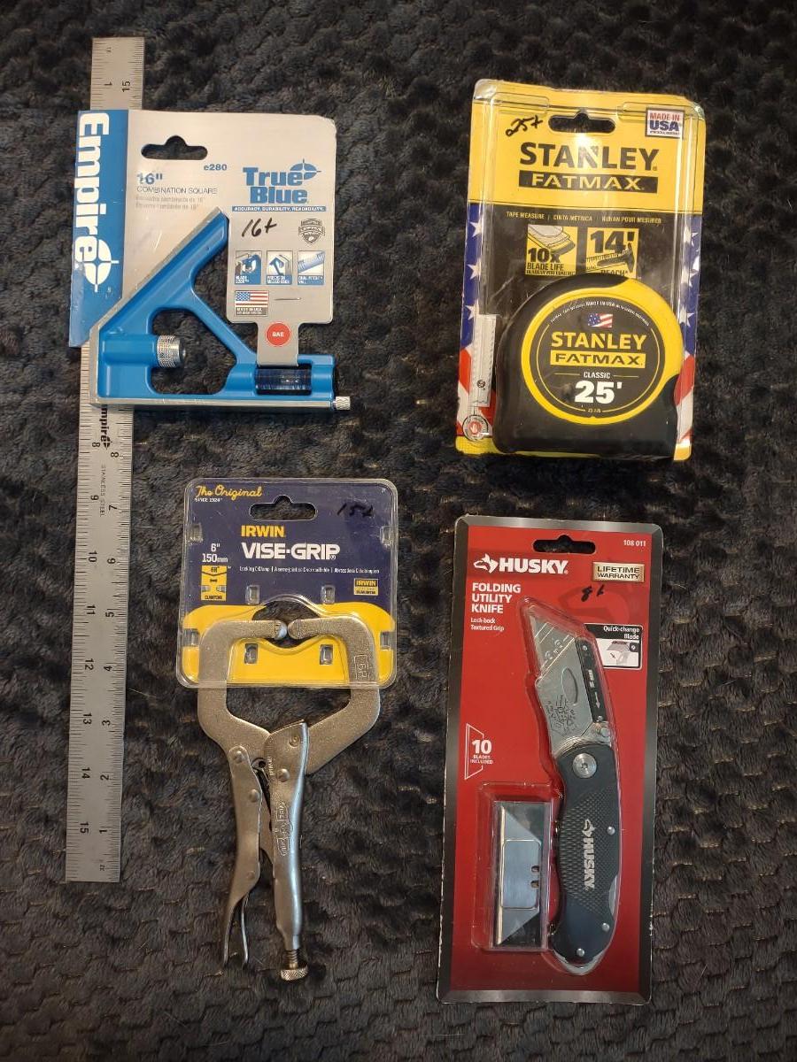 BRAND NEW HAND TOOLS. TRUE BLUE COMBINATION SQUARE, HUSKY BOX CUTTER, STANLEY FATMAX 25