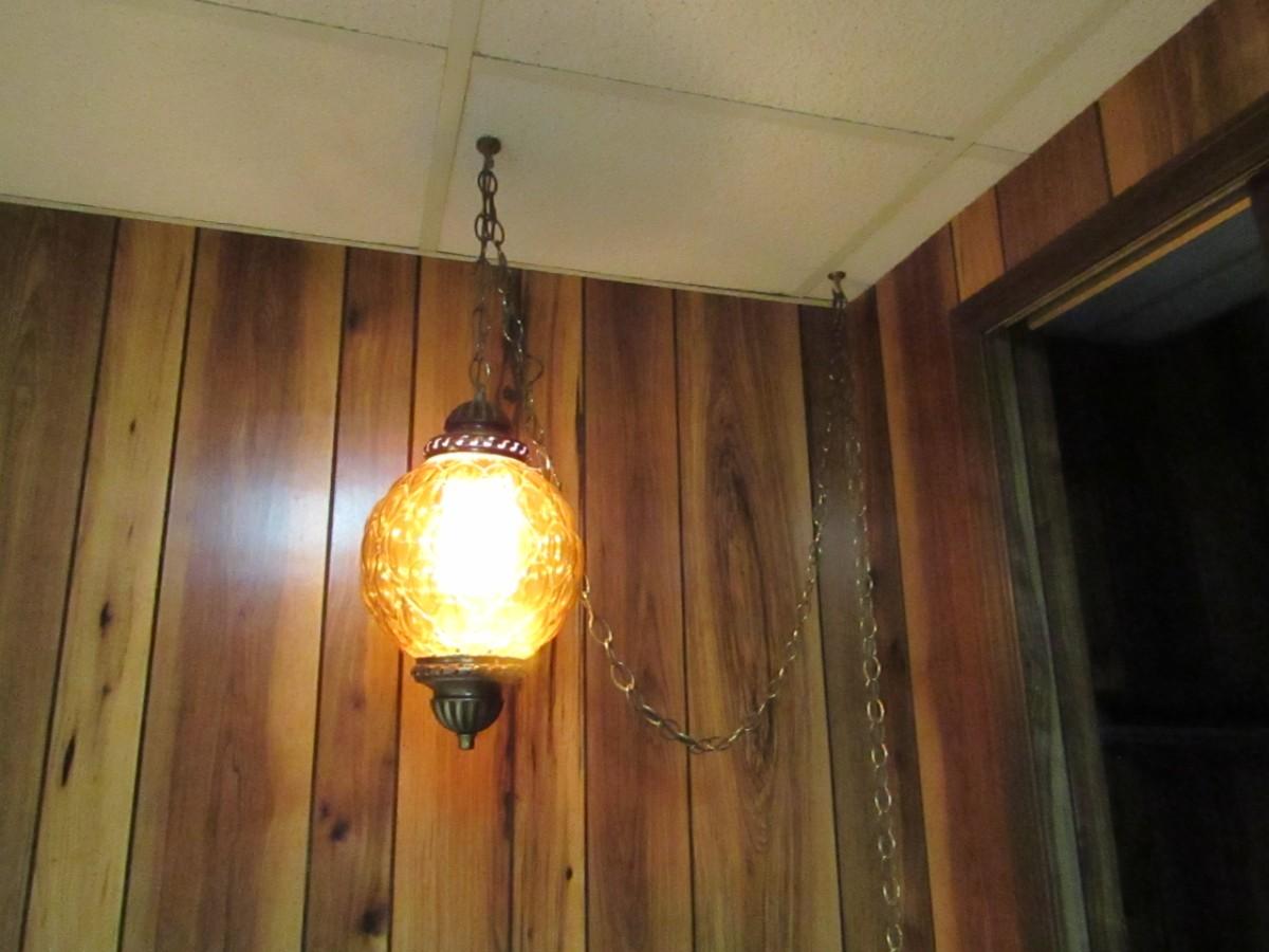 LOT 227 HANGING GLASS LAMP
