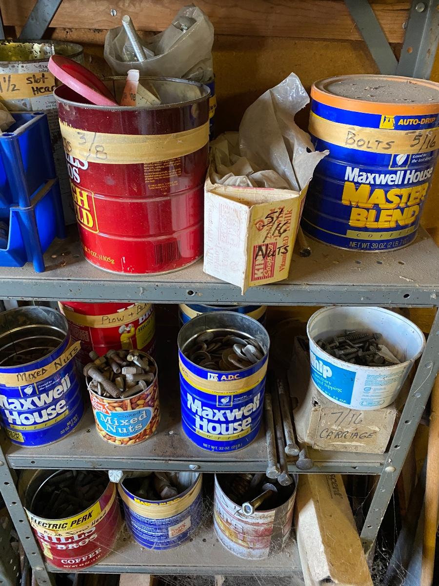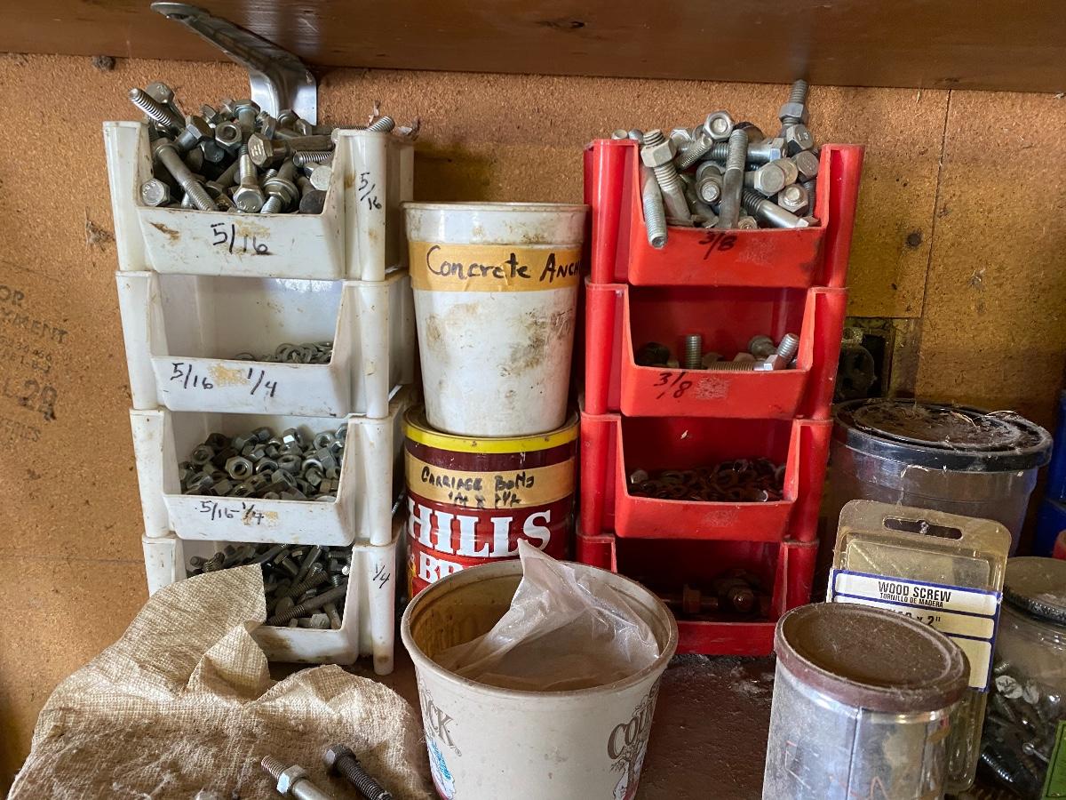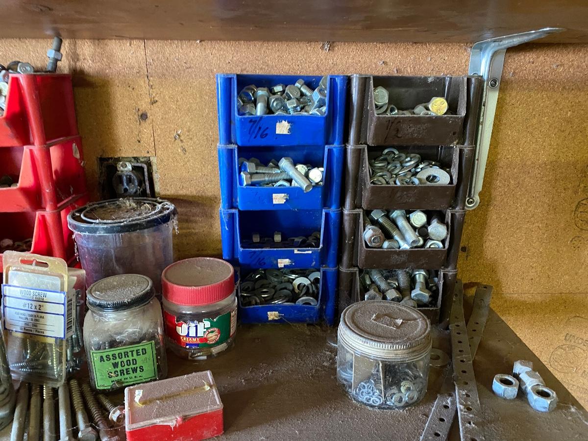 LOTS OF HARDWARE, BOLTS, SCREWS AND MORE.