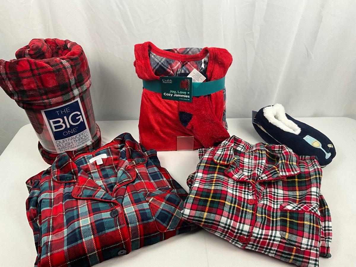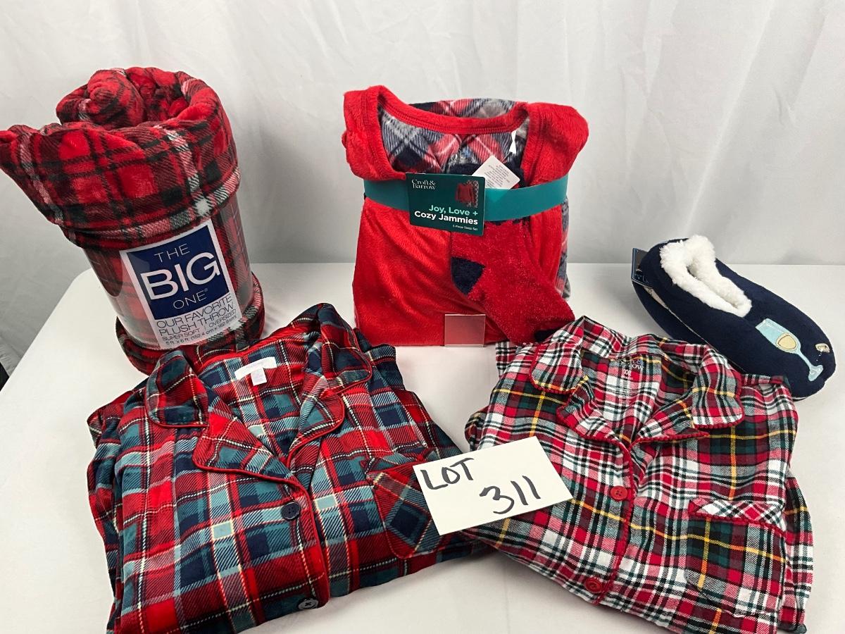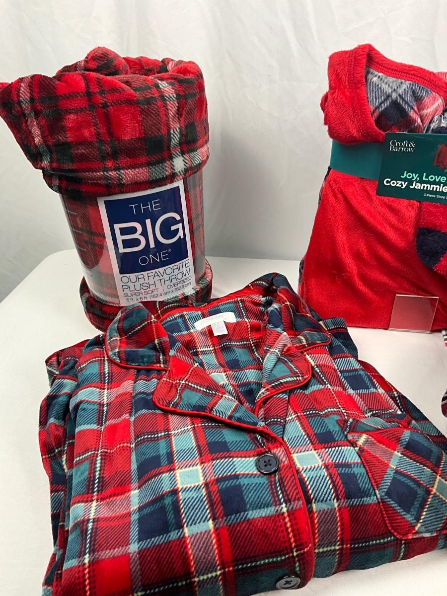 Croft & Barrow pajamas 2 sets size XXL, Secret Treasures pajamas size XXL, pair of slippers and a throw blanket.