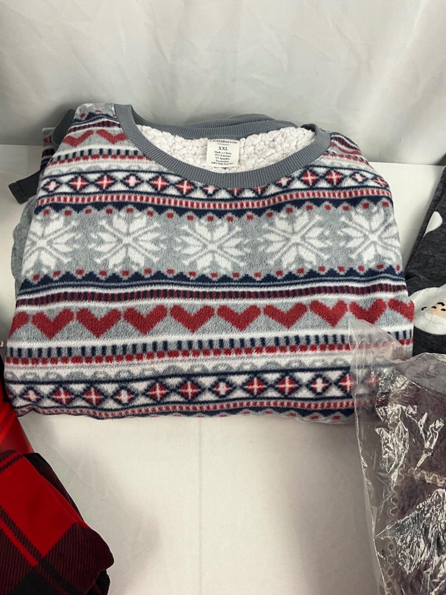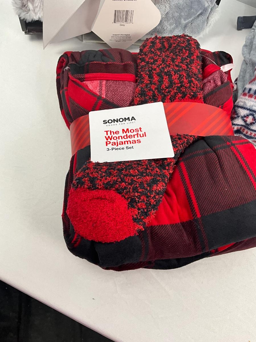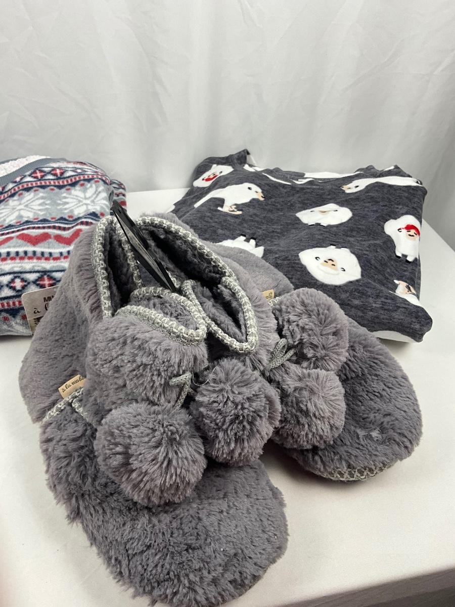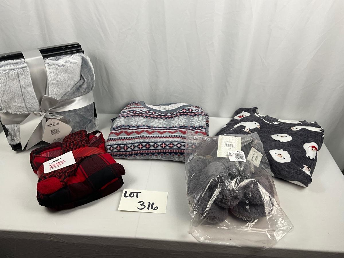 Croft & Barrow pajama set size XXL, Two Sonoma pajama sets size XXL, Pair of faux fur slippers, Berkshire throw blanket.