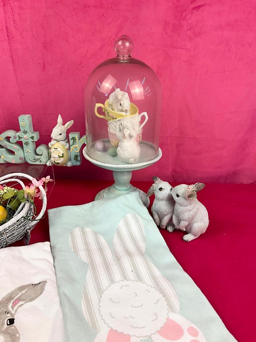 Lot I 921 Easter Decor Lot with Bunnies in a Cloche