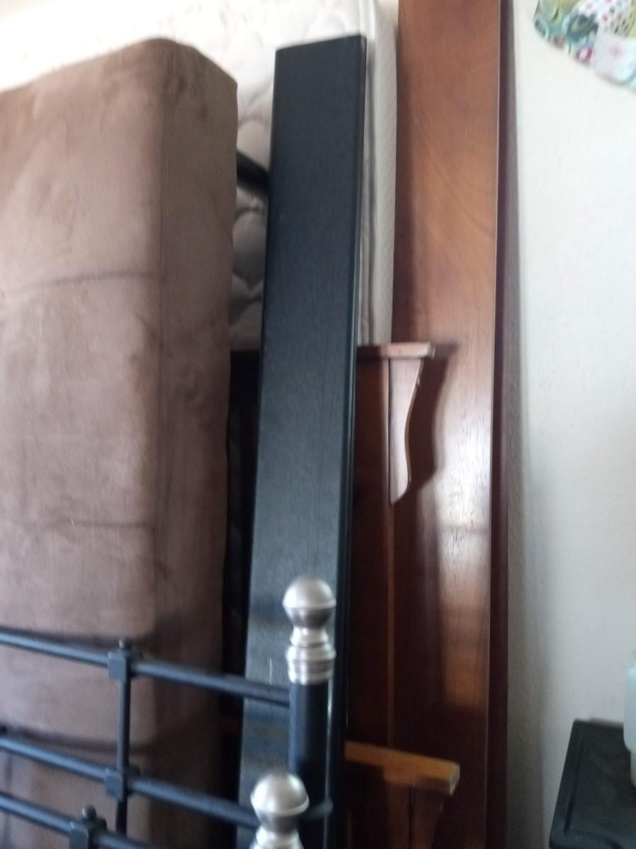 HEADBOARD MEASURES 56" WIDE. INCLUDES THE HEAD AND FOOT BOARDS AND SIDE RAILS. IN GREAT SHAPE