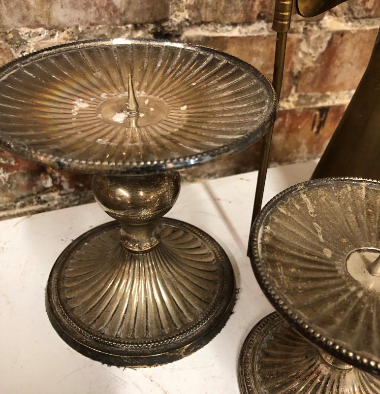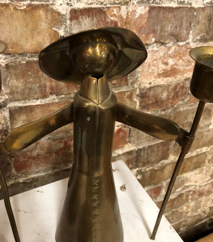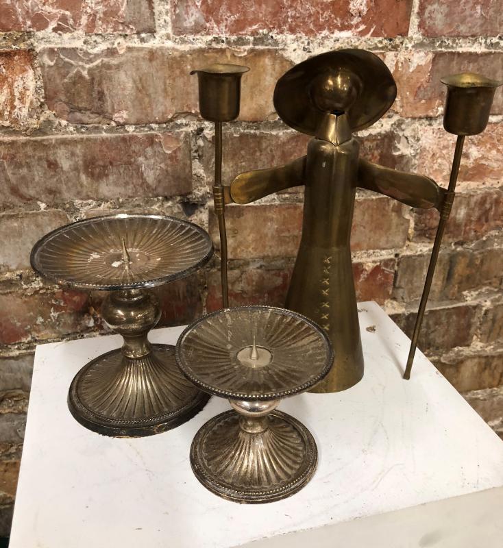 Here is an interesting grouping of Imported Brass Candlesticks...10" Modernist Figure and stand type...
