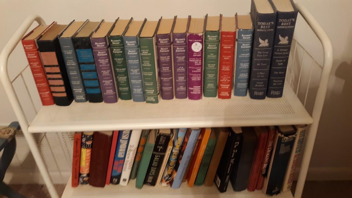 Lot Includes a Bookshelf and Readers Digest Books and Other Books Lot 2