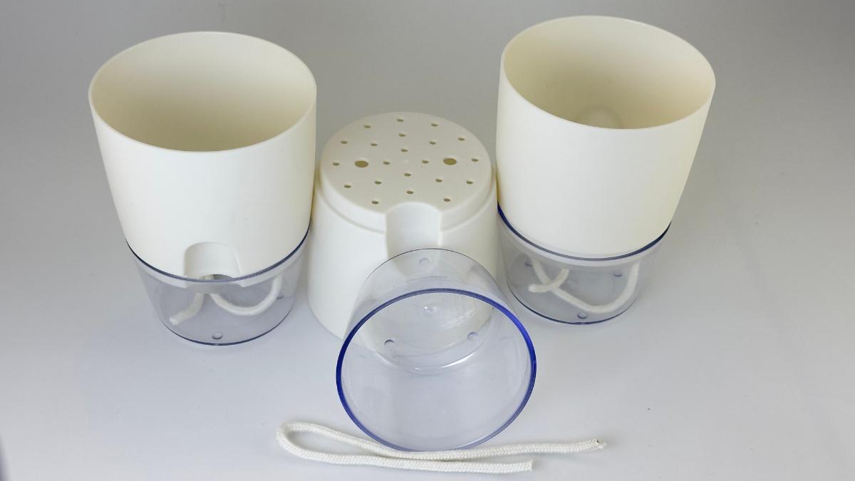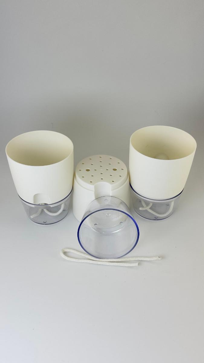 1. Lot Includes Three Sets of New Self-Watering Plant Pots ; Pot diameter 4 inches inner pot 3.5 inches and 5.5 inches tall including the water reservoir.