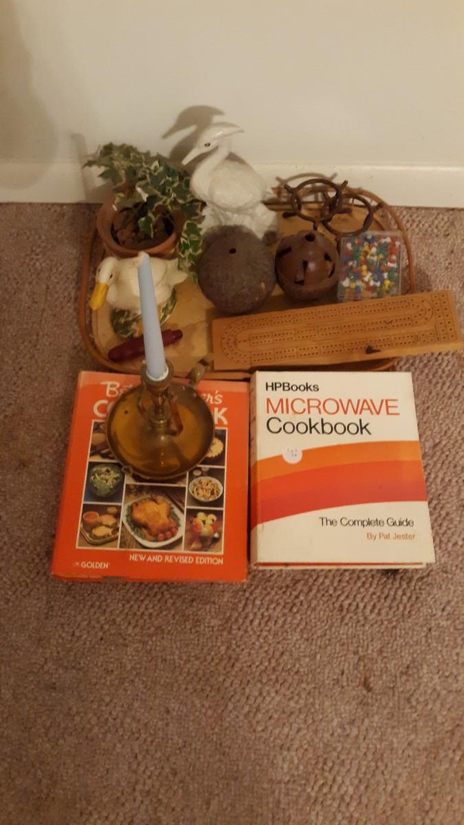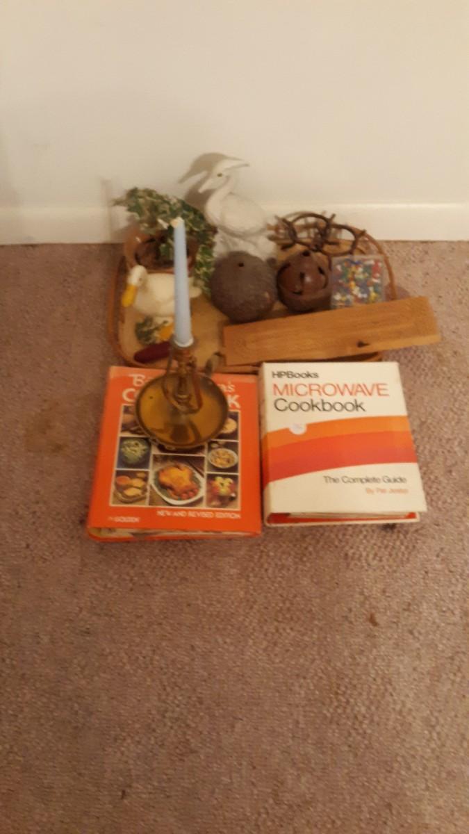 Lot Includes Vintage Cookbooks, Brass Ships Candleholder and Decor