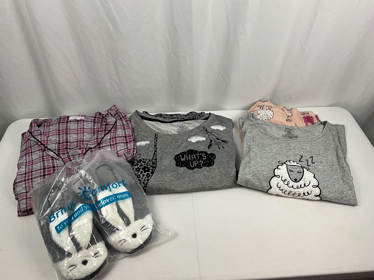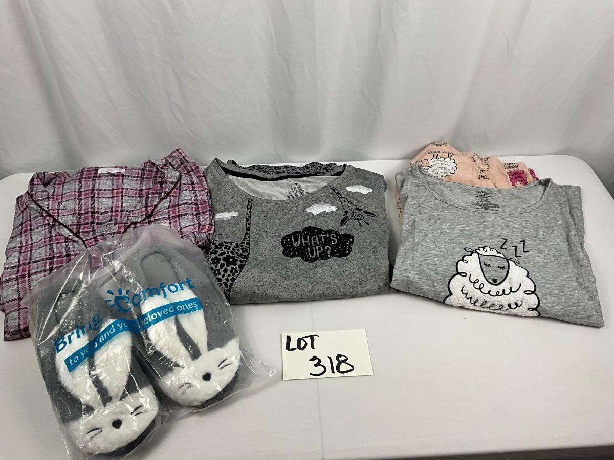 Lot. J 318 Three Pajama Sets Pair of Bunny Slippers