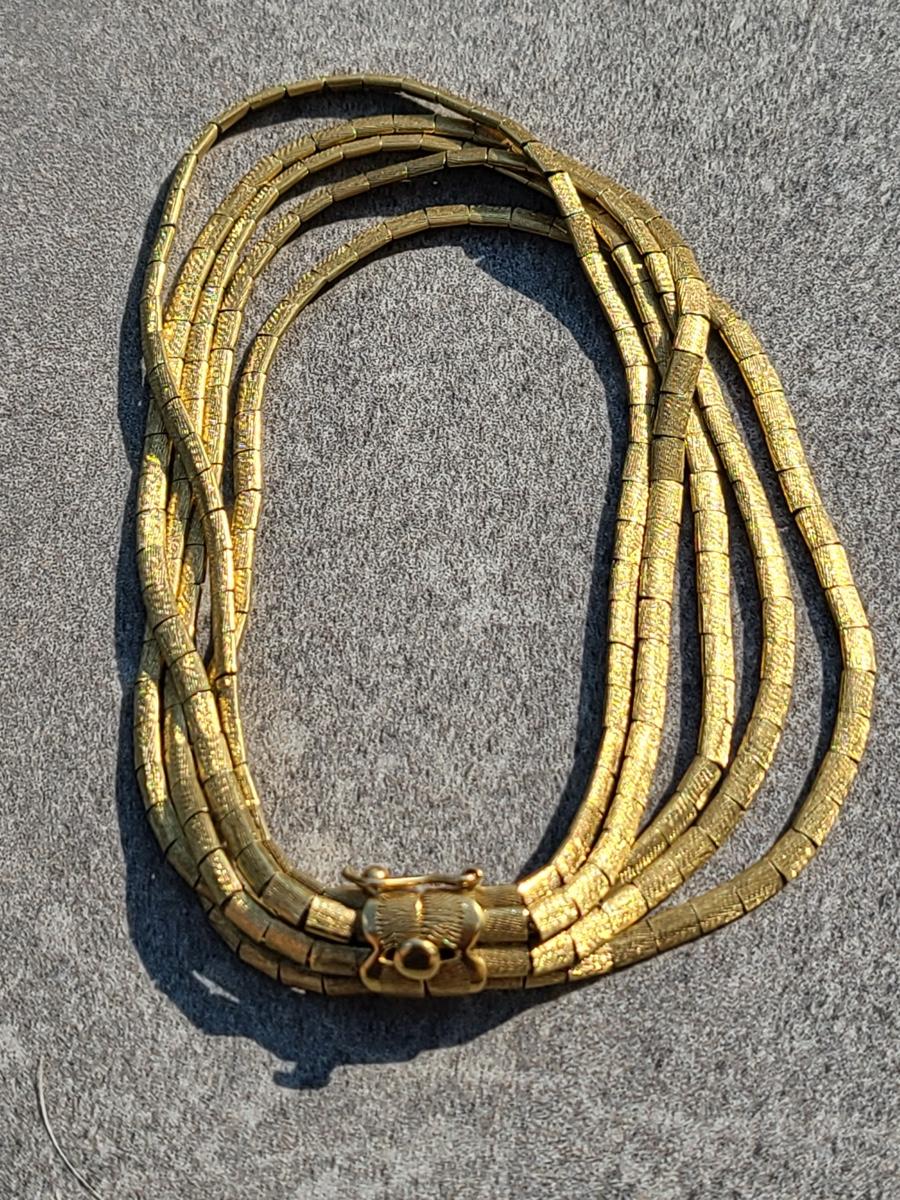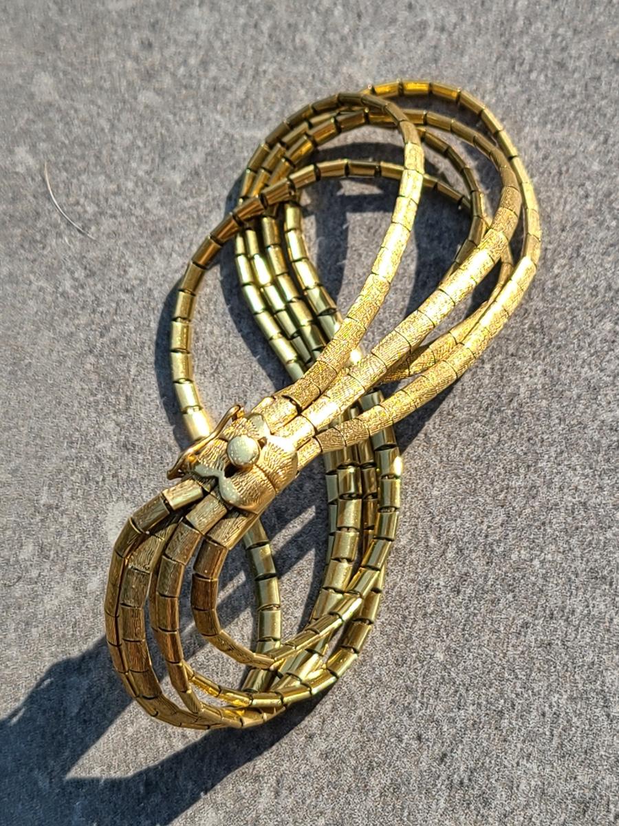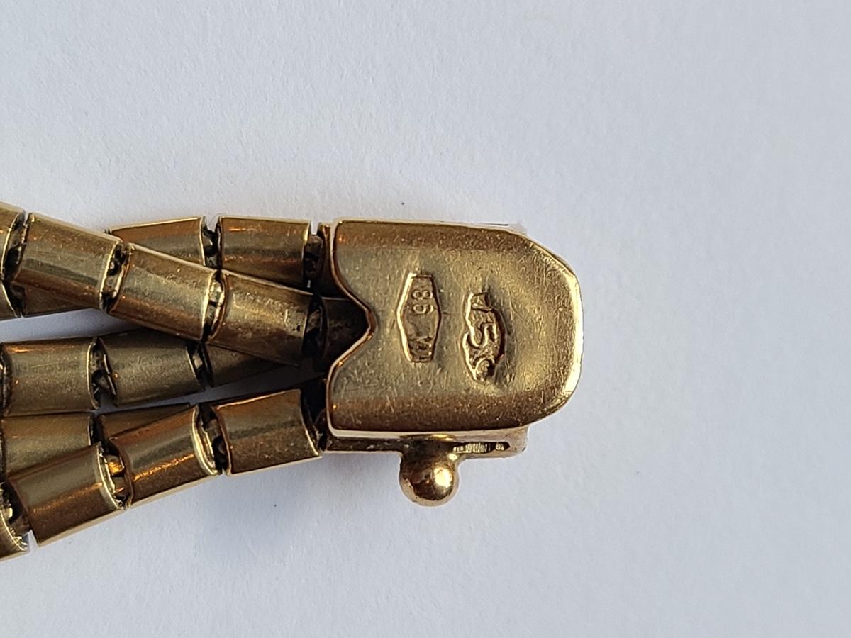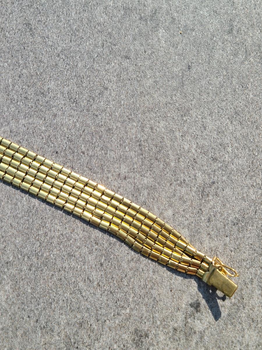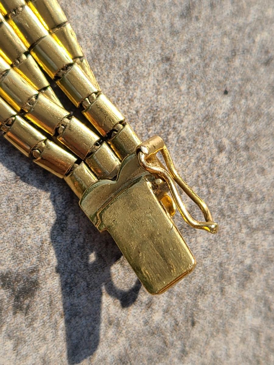 This gorgeous vintage gold bracelet is just slinky and sexy! It is stunning and the weight, you can feel the luxury! Stamped 750 86 VI on the clasp. This solid vintage piece is a true treasure! Please see all pictures as they are the best representation of the items. The pictures show condition, measurements if taken, and what is included in the lot. Due to the large amount that we photograph and the time frame, we are not always able to take measurements. All items unless noted, are pre-owned and have been used. If you purchased furniture, you must bring help. We do not allow one person to carry large furniture out on their own. Bring help, tools and a truck for the safety of our client’s homes, and your personal safety. Company policy. Thank you.