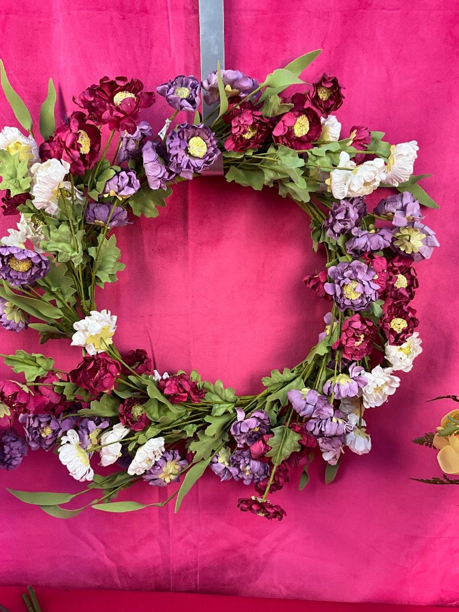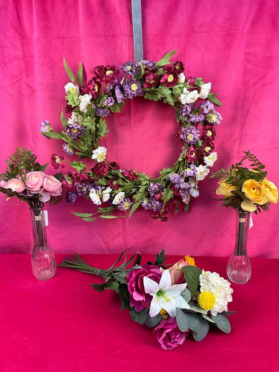 Lot J 932 Pier 1 Floral Wreath & New Faux Flowers