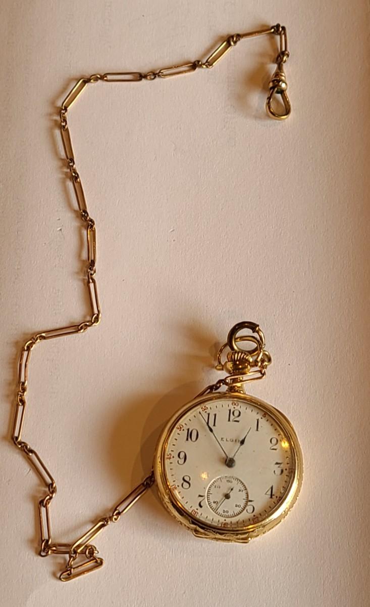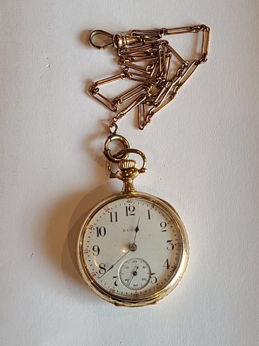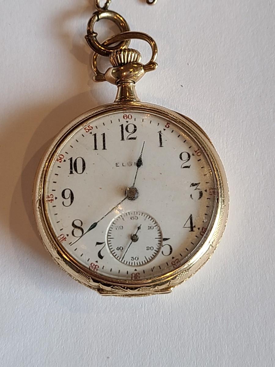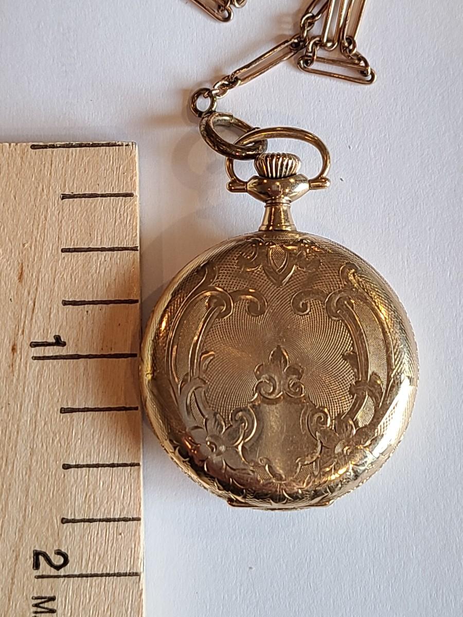 Lot J1: Ladies Elgin Pocket Watch Keystone 14kt Gold Shell