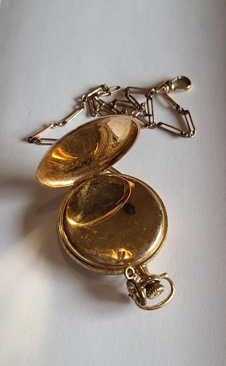 Lovely watch, untested, in 14kt Keystone shell. Chain is not gold. Please see all pictures as they are the best representation of the items. The pictures show condition, measurements if taken, and what is included in the lot. Due to the large amount that we photograph and the time frame, we are not always able to take measurements. All items unless noted, are pre-owned and have been used. If you purchased furniture, you must bring help. We do not allow one person to carry large furniture out on their own. Bring help, tools and a truck for the safety of our client’s homes, and your personal safety. Company policy. Thank you.