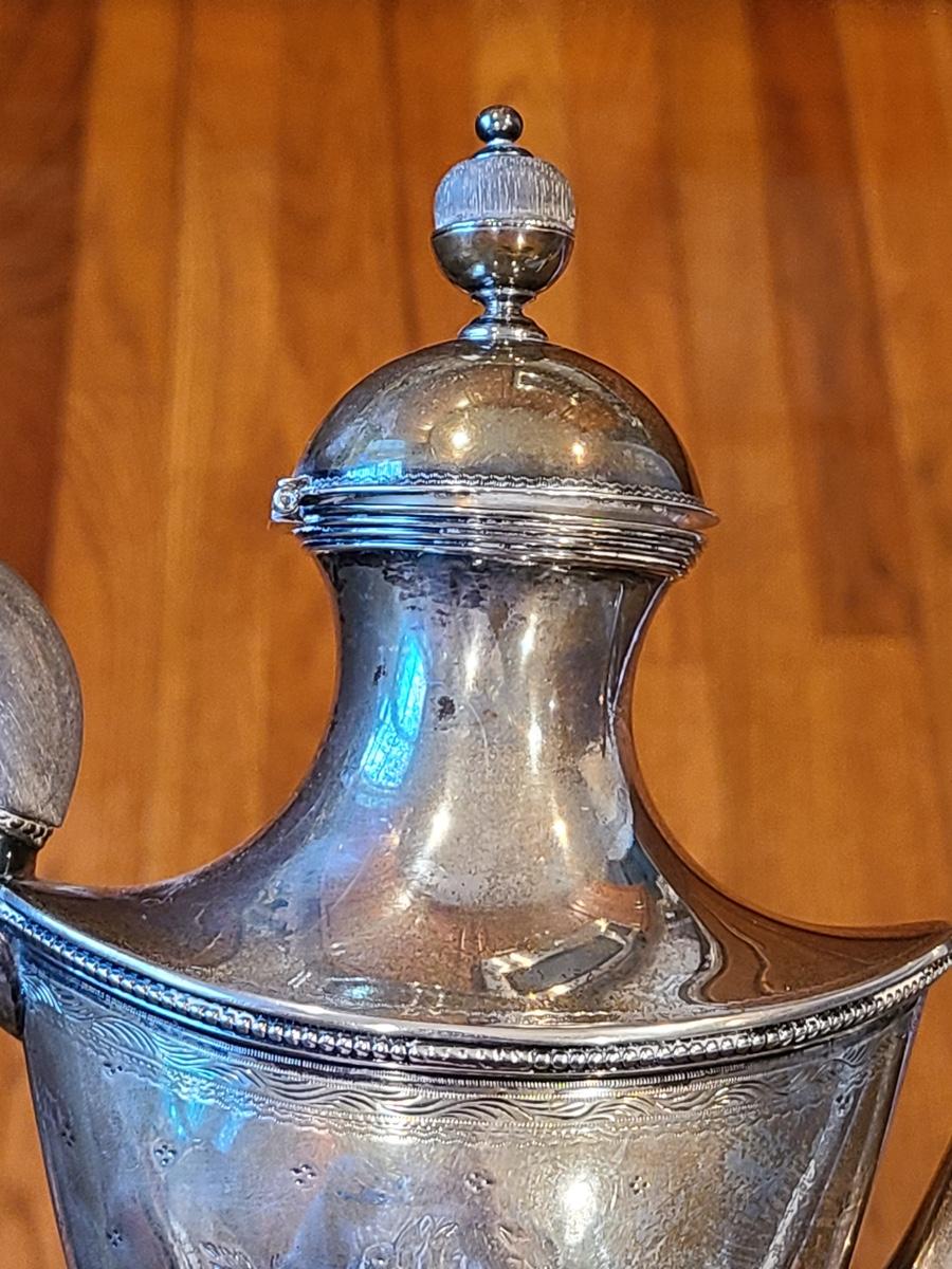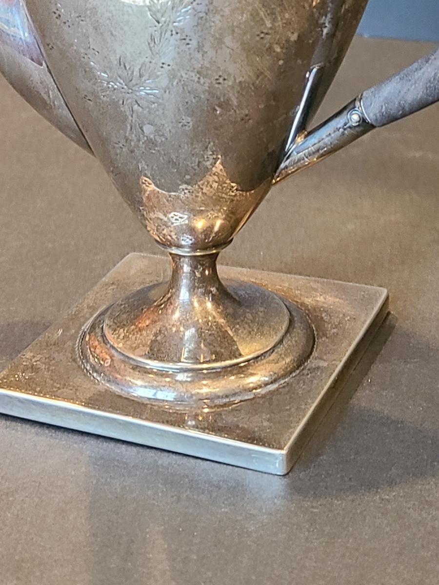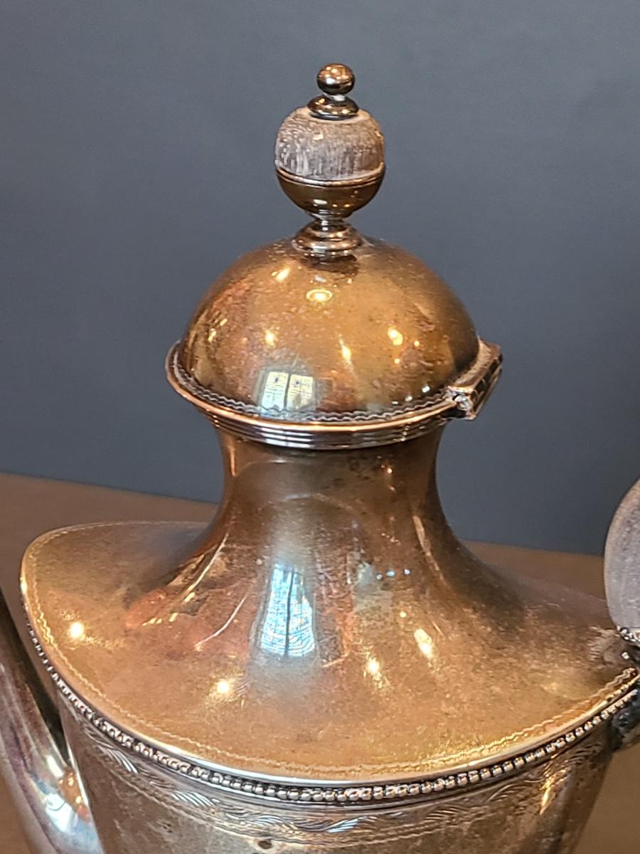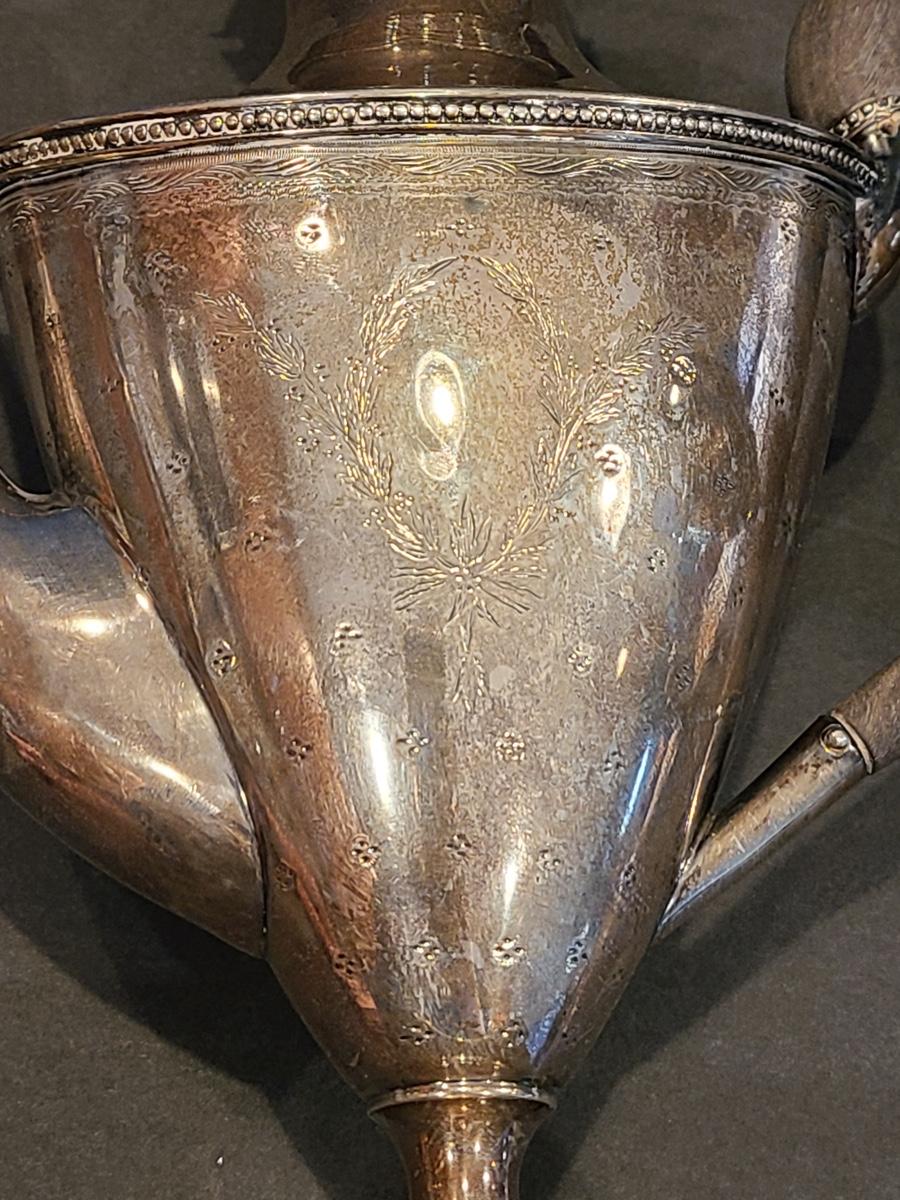 This antique/vintage set is gorgeous! It is hard to find sets like these still together. On one side of each piece is a wreath and on the other a "C", to some it also looks like a "D", but the client confirmed it is a C, but you could use either way. This set is older and sits just a little "cockeyed". These are solid sterling pieces, minus the handle and wood cap on the teapot. These are worth more than scrap due to their collectibility and age. These would look stunning polished! Please see all pictures as they are the best representation of the items, and show the condition and measurements if taken. You will need to bring your own packaging supplies.