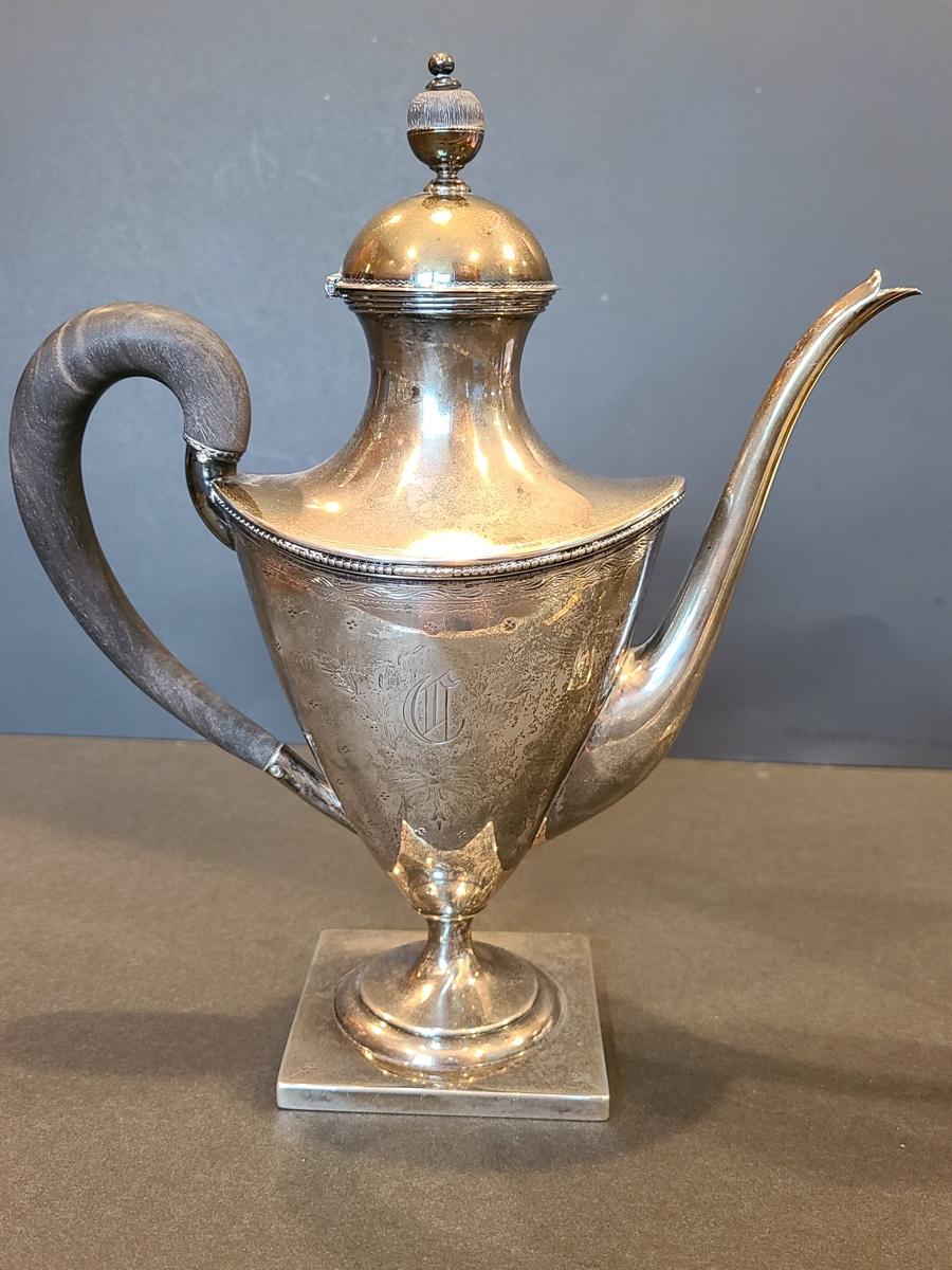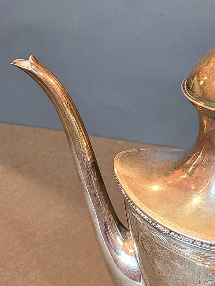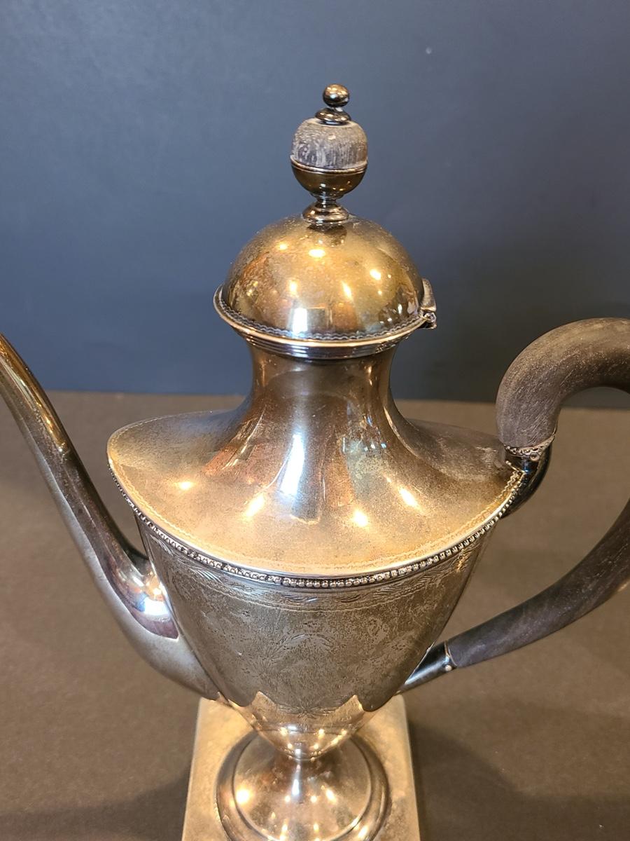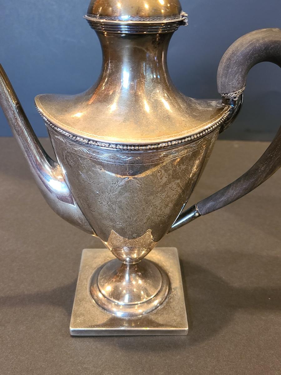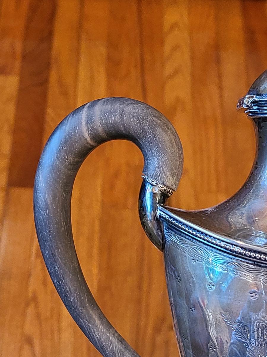 This antique/vintage set is gorgeous! It is hard to find sets like these still together. On one side of each piece is a wreath and on the other a "C", to some it also looks like a "D", but the client confirmed it is a C, but you could use either way. This set is older and sits just a little "cockeyed". These are solid sterling pieces, minus the handle and wood cap on the teapot. These are worth more than scrap due to their collectibility and age. These would look stunning polished! Please see all pictures as they are the best representation of the items, and show the condition and measurements if taken. You will need to bring your own packaging supplies.