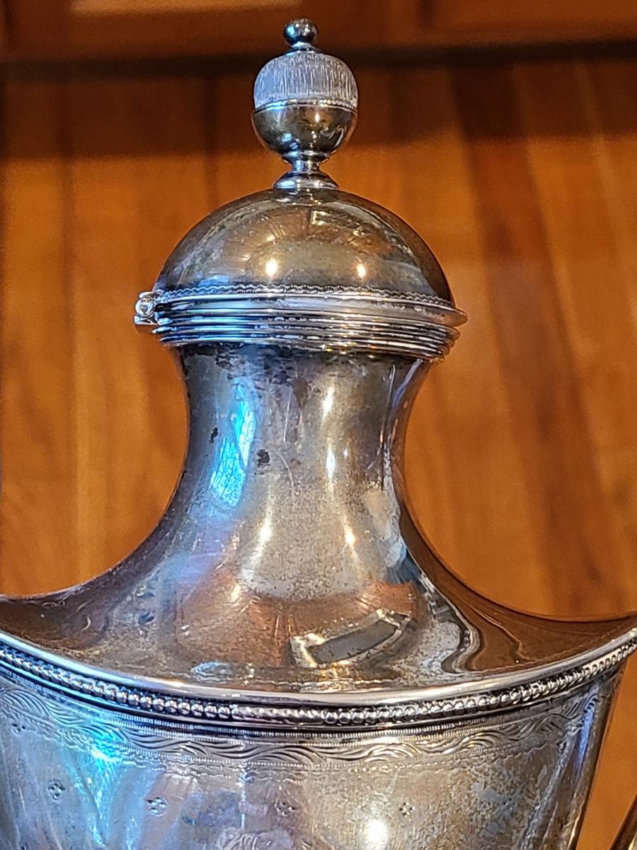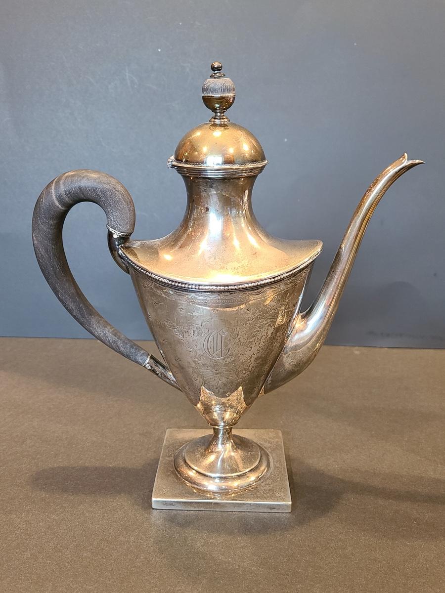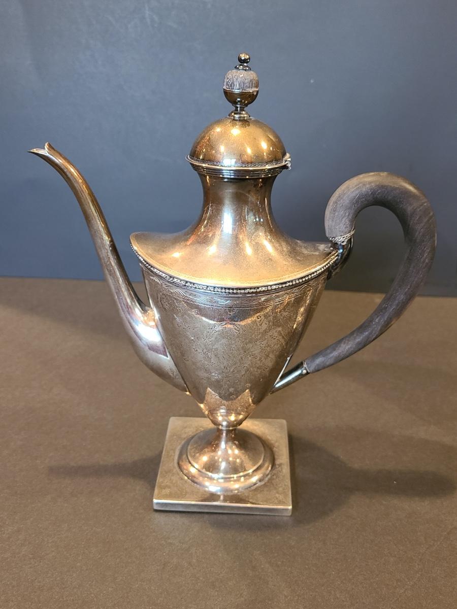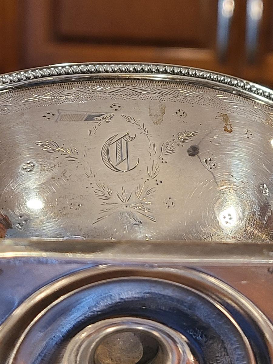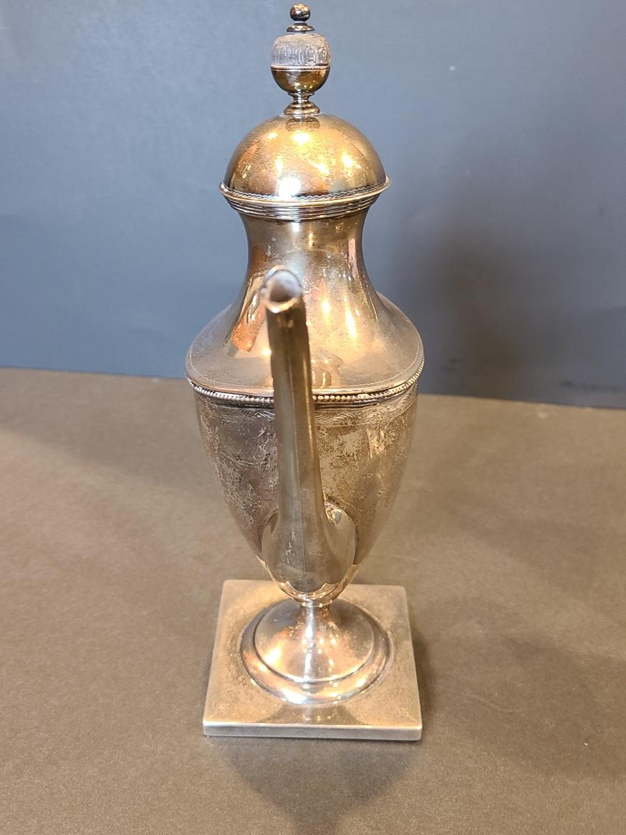 This antique/vintage set is gorgeous! It is hard to find sets like these still together. On one side of each piece is a wreath and on the other a "C", to some it also looks like a "D", but the client confirmed it is a C, but you could use either way. This set is older and sits just a little "cockeyed". These are solid sterling pieces, minus the handle and wood cap on the teapot. These are worth more than scrap due to their collectibility and age. These would look stunning polished! Please see all pictures as they are the best representation of the items, and show the condition and measurements if taken. You will need to bring your own packaging supplies.