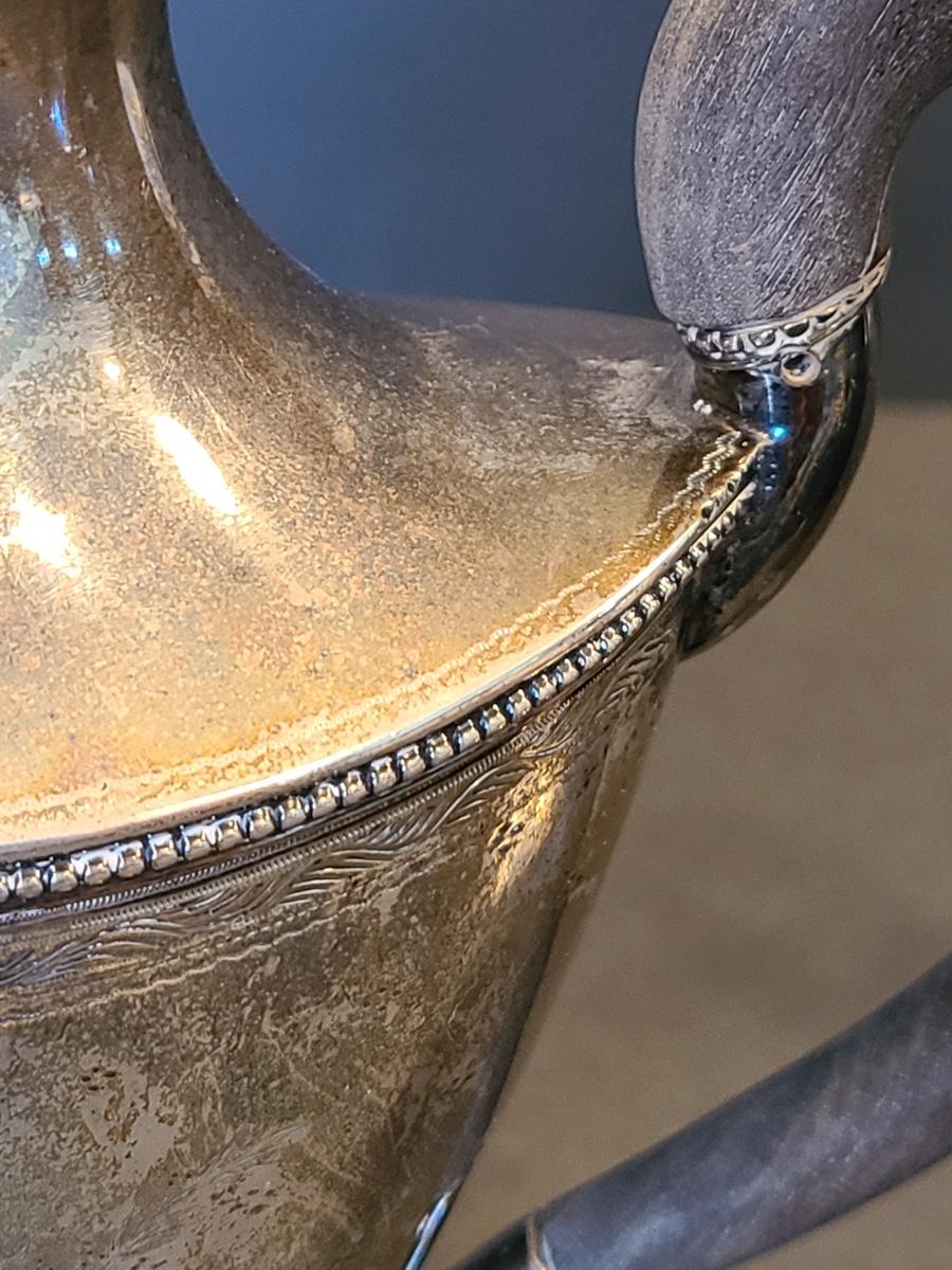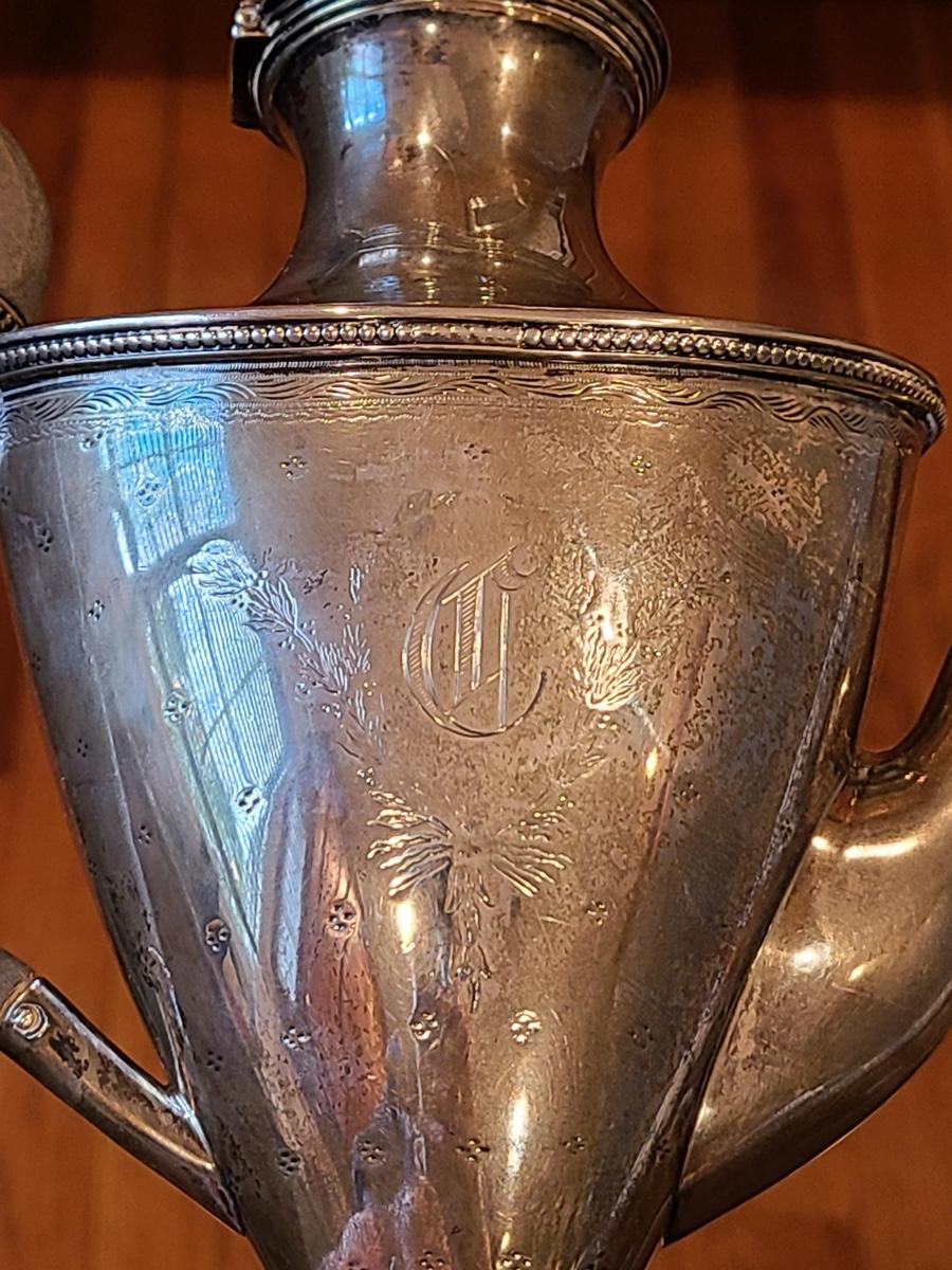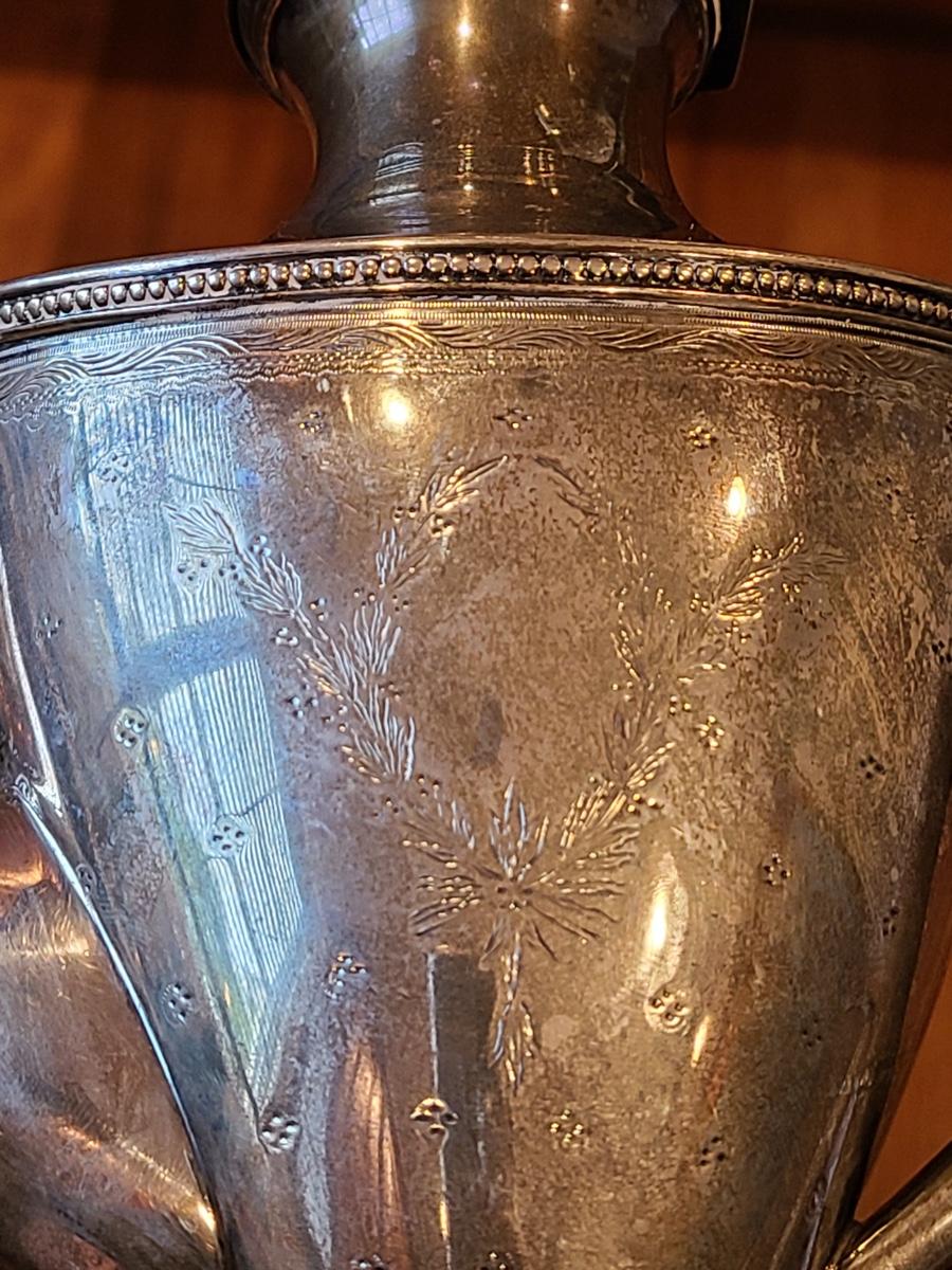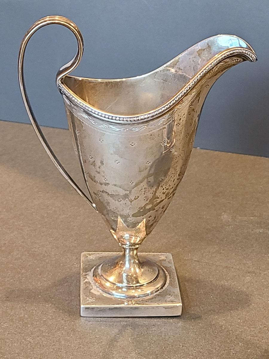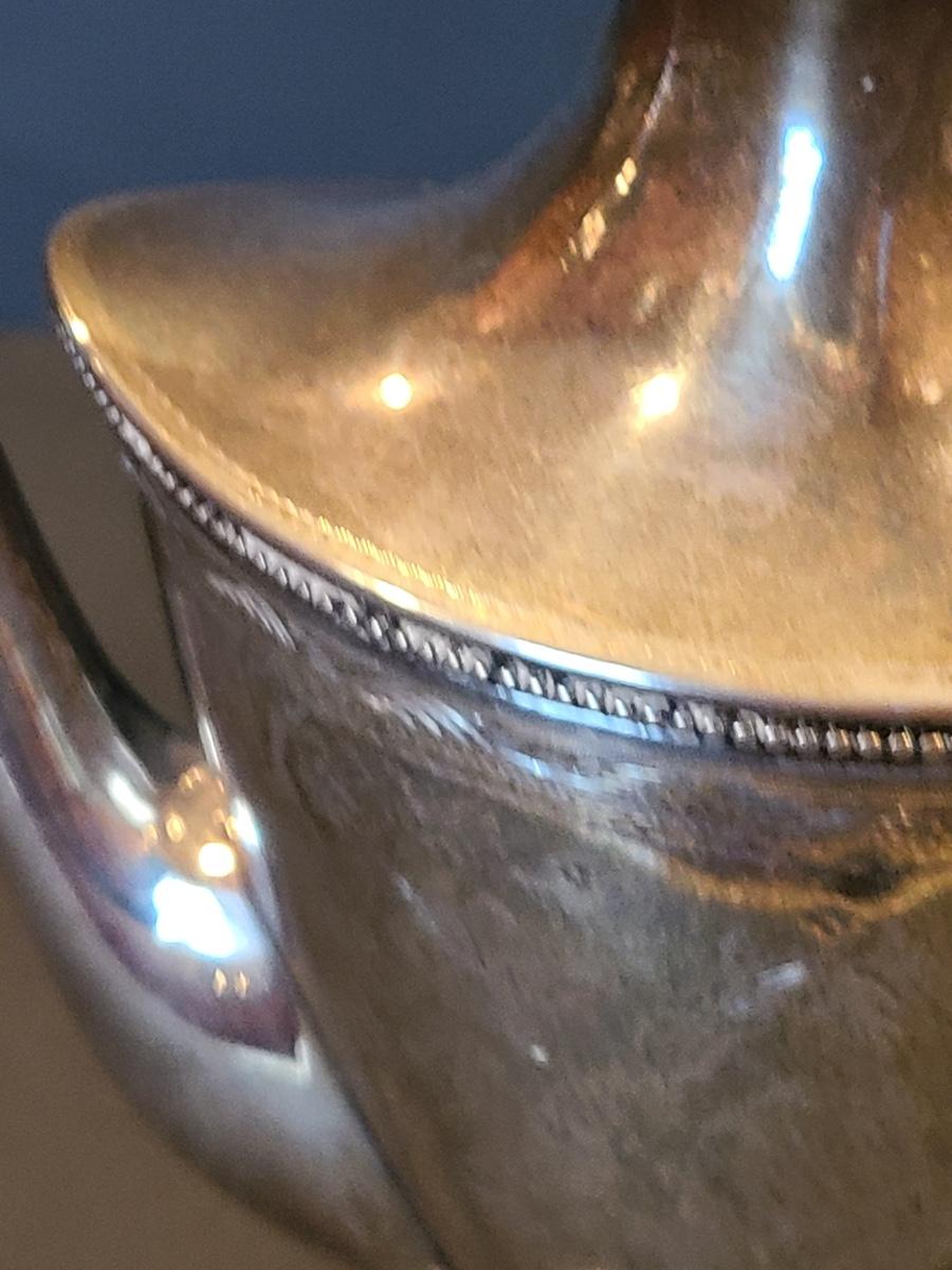 This antique/vintage set is gorgeous! It is hard to find sets like these still together. On one side of each piece is a wreath and on the other a "C", to some it also looks like a "D", but the client confirmed it is a C, but you could use either way. This set is older and sits just a little "cockeyed". These are solid sterling pieces, minus the handle and wood cap on the teapot. These are worth more than scrap due to their collectibility and age. These would look stunning polished! Please see all pictures as they are the best representation of the items, and show the condition and measurements if taken. You will need to bring your own packaging supplies.