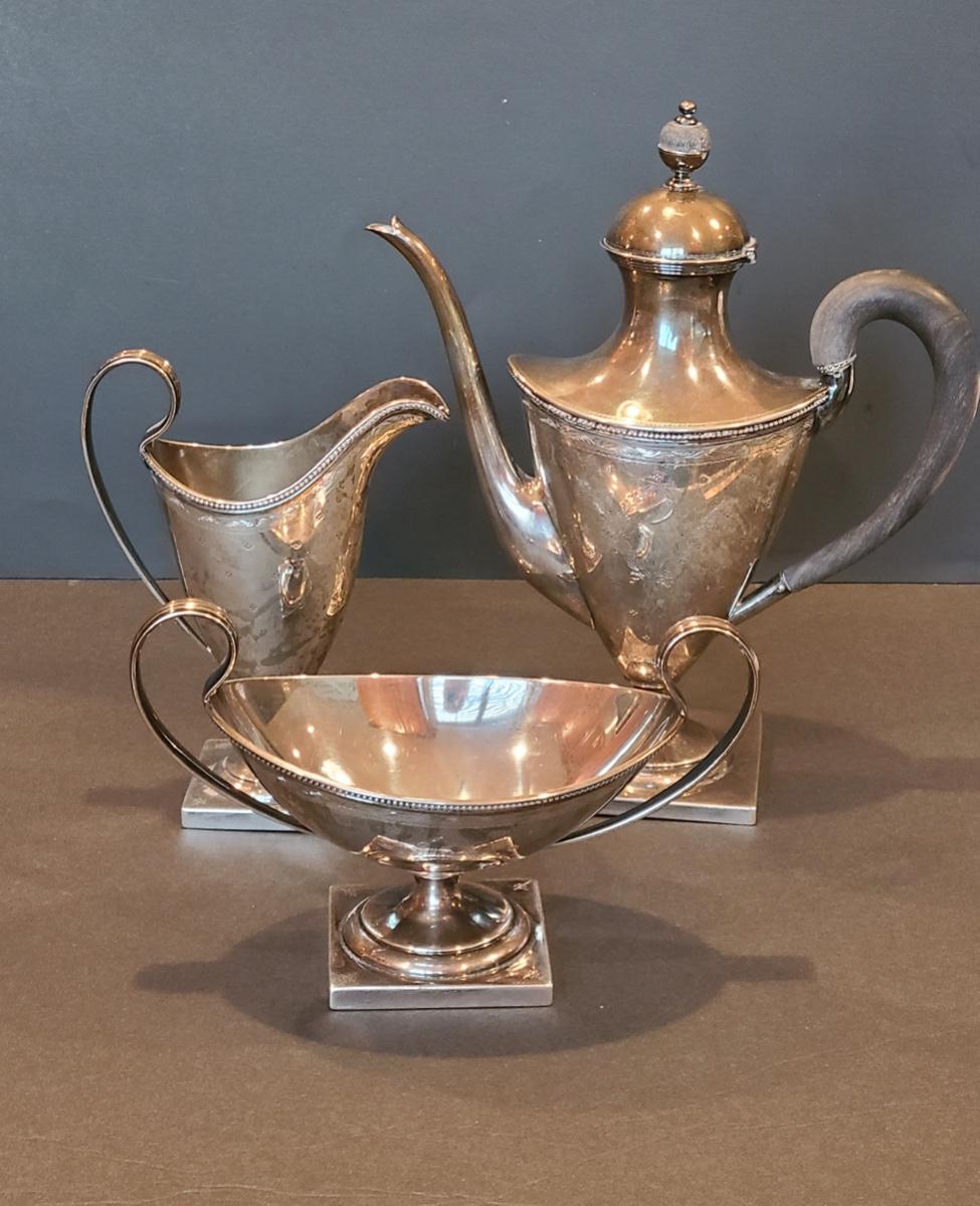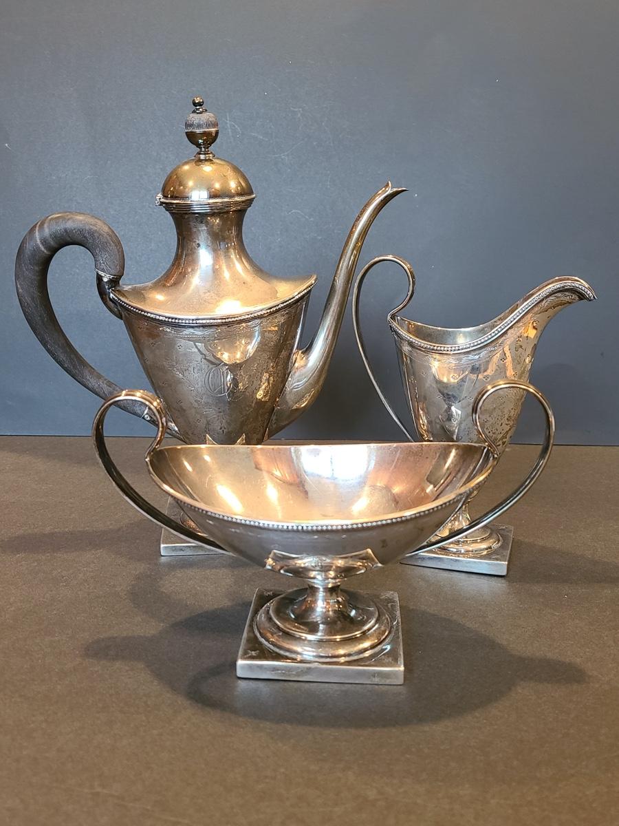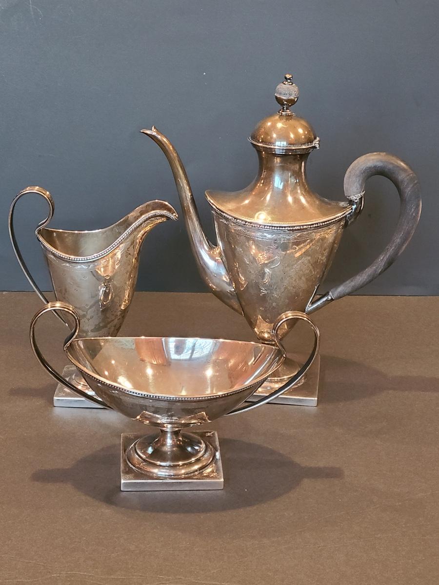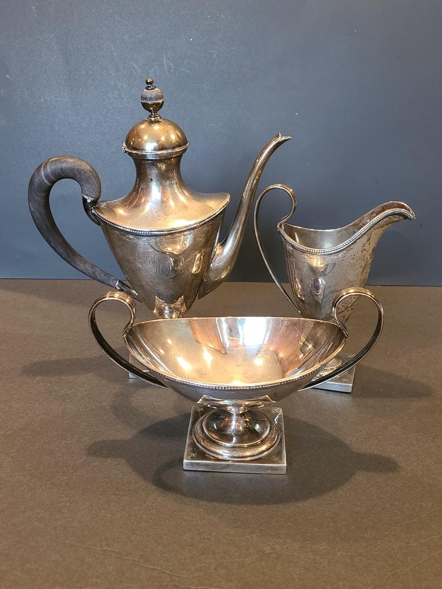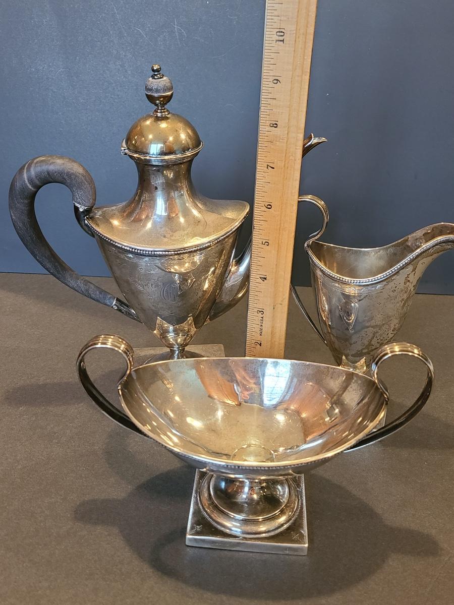 Lot J1: Sterling Bailey Banks Biddle Tea Set (Teapot, Creamer, Sugar)