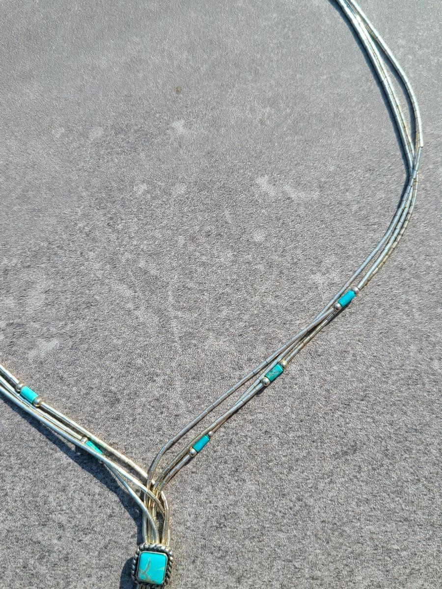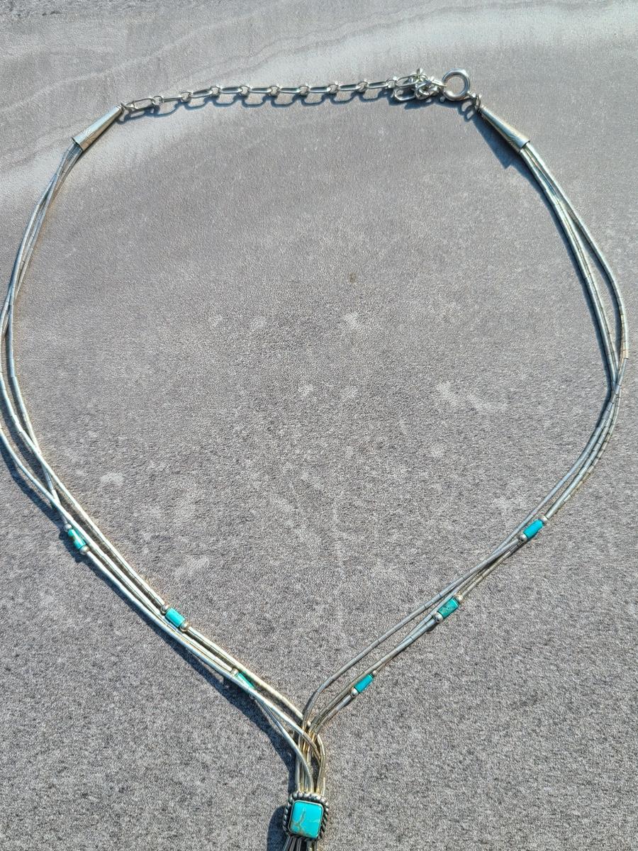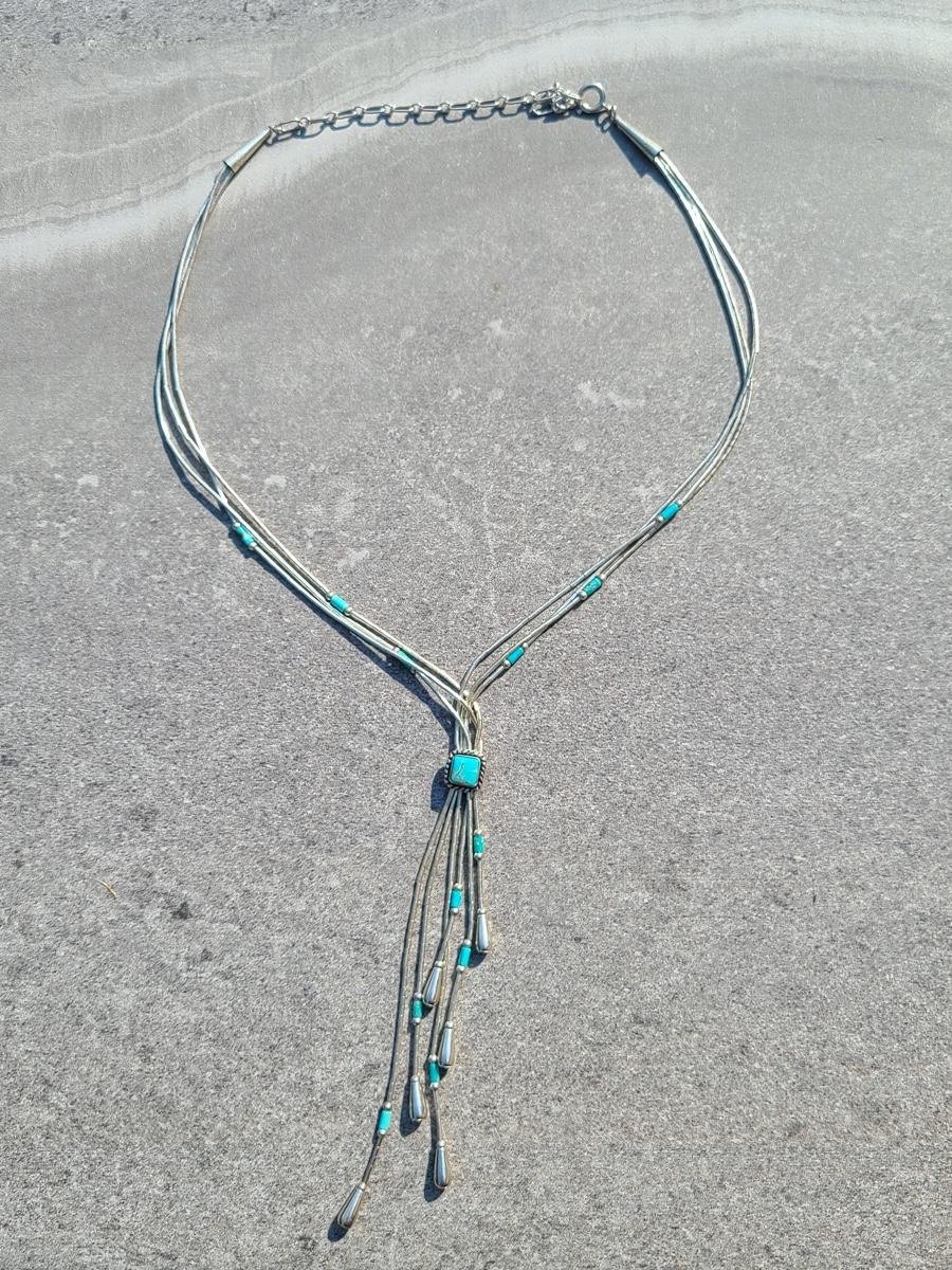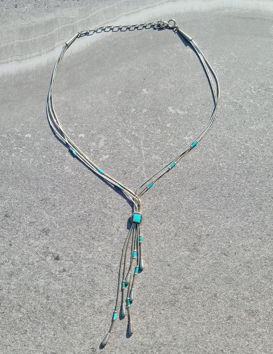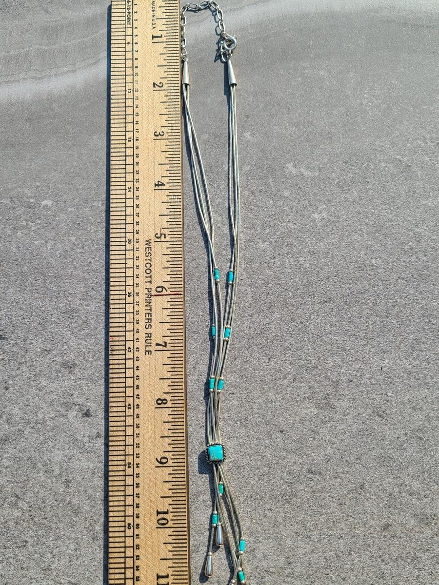 Lot J11: Vintage "Liquid Silver" Sterling Necklace w/Turquoise